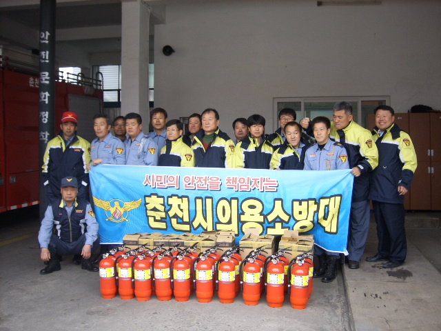 춘천의용소방대(대장 이돈균)에서는 관내 기초수급자를 대상으로 3월 22일 10시 소양119안전센터 차고에서 대원 20여명이 참석하여 무료로 소화기 30EA를 전달하고 소화기 사용방법 및 관리요령을 교육하였습니다.