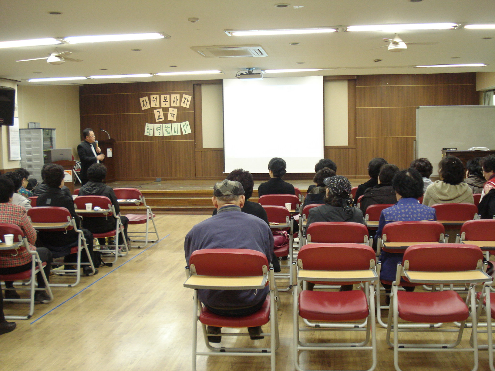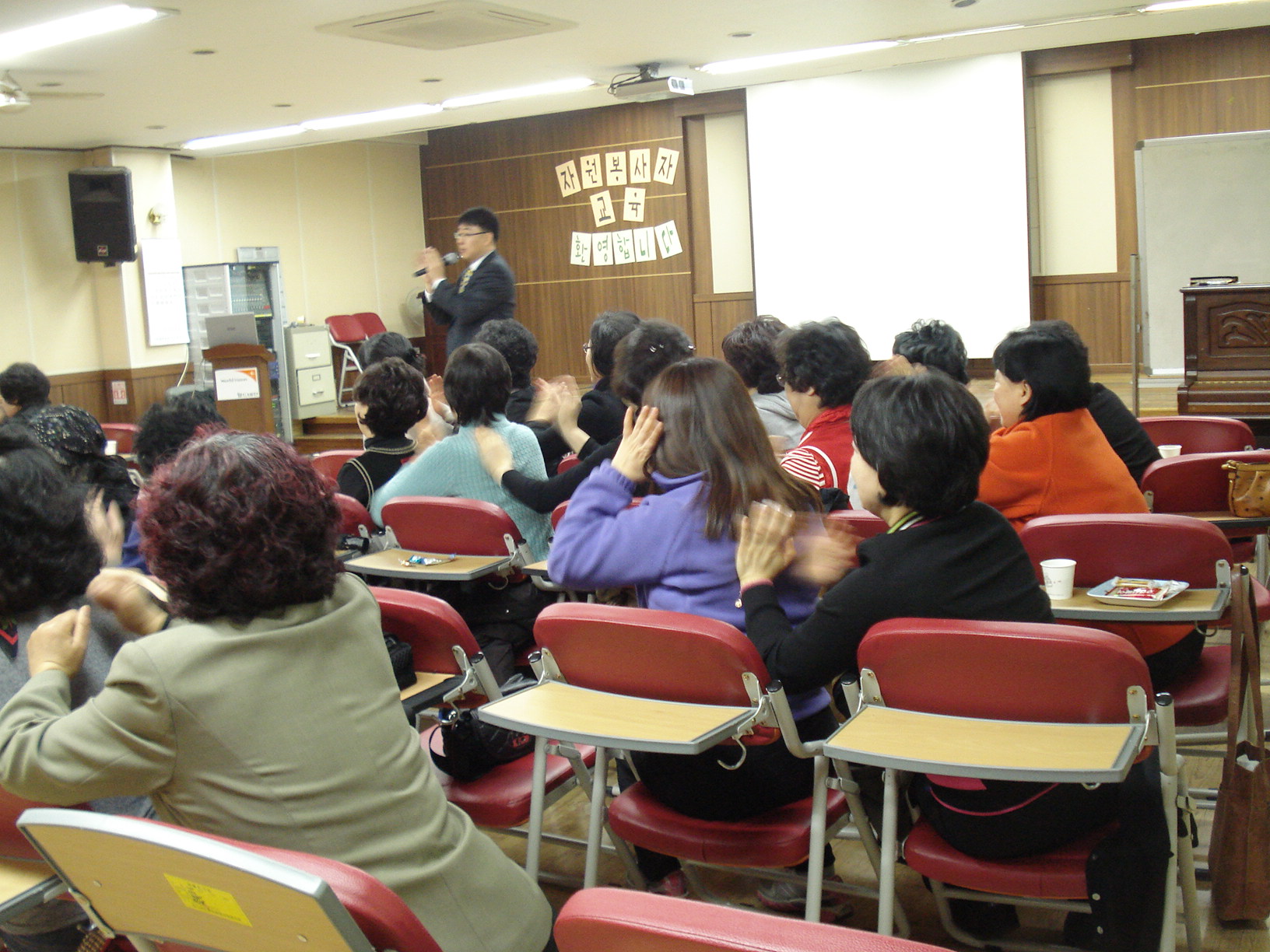 오늘 월드비전 춘천종합사회복지관 강당에서 자원봉사자교육이 있었습니다.