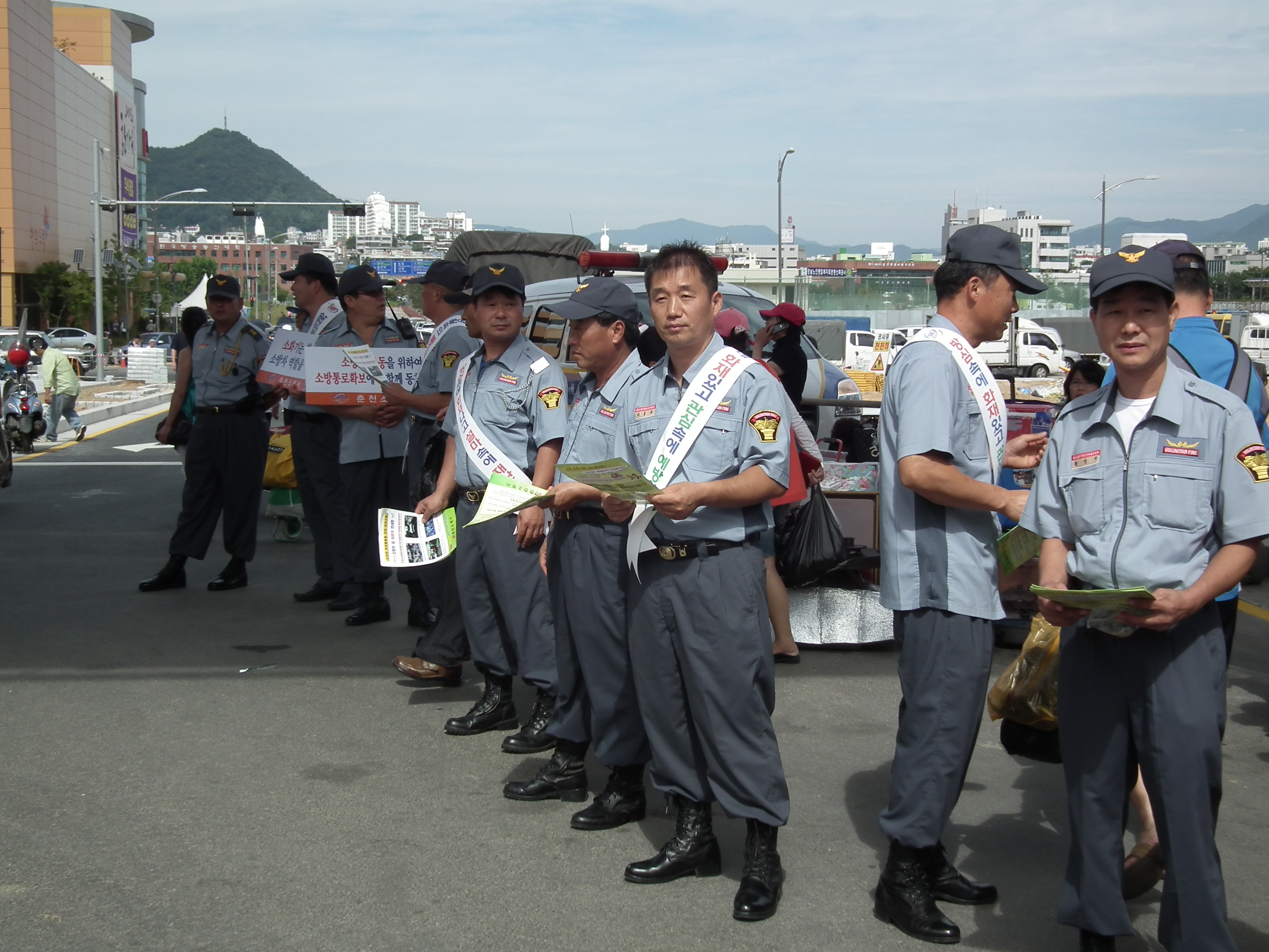 9월7일 춘천 풍물시장에서 조완구서장님과 춘천의소대원25명 및 춘천여성의소대원과 합동으로 불조심 켐페인을 실시 하였습니다.