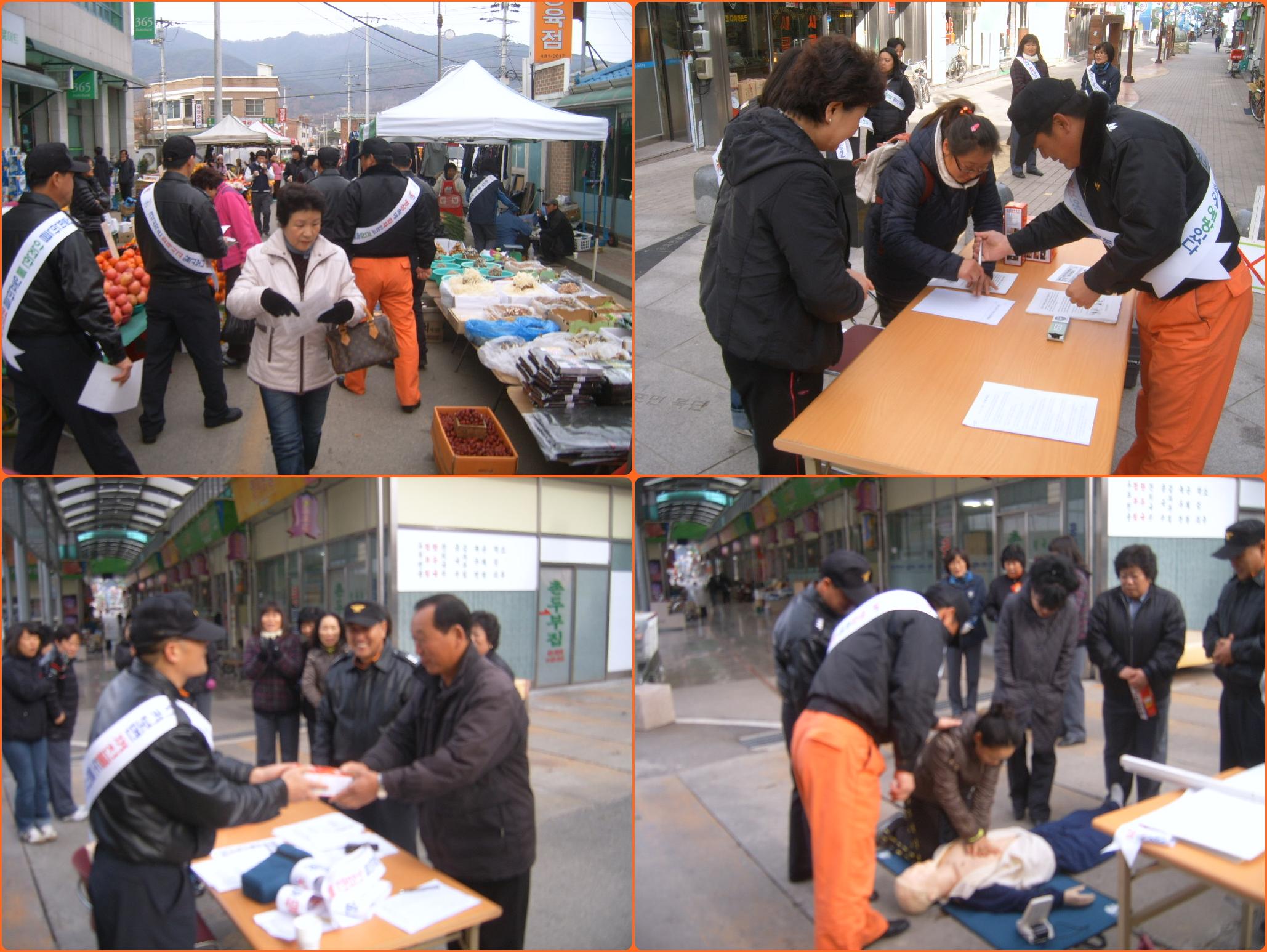 양구119안전센터(센터장 장춘식)는 11. 20(금) 양구읍 중앙시장, 차없는 거리 일원에서 직원과 양구여성대와 함께 불조심 릴레이 캠페인을 실시하였습니다. 상가관계자와 주민에게 화재예방전단지 배부하였으며 또한 시민이 직접 참여할 수 있는 퀴즈, 심폐소생술 체험등 운영하여 시민과 함께 호흡하는 119안전센터라는 좋은 호응을 얻었습니다.