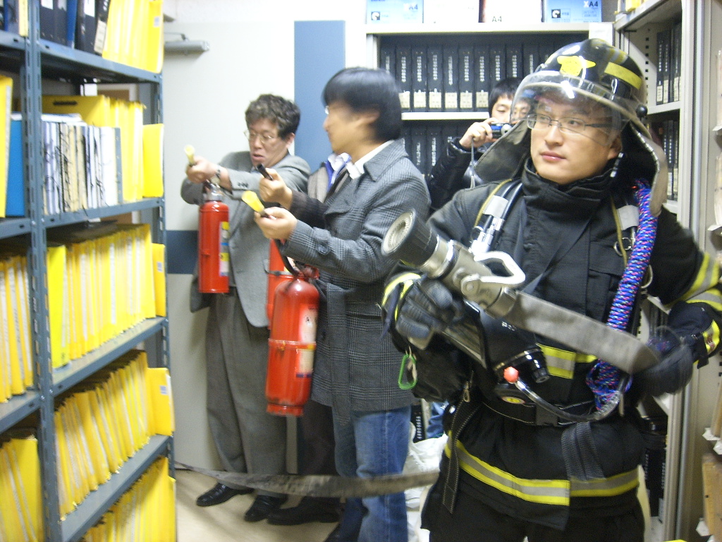 화재시 초기 진압 요령, 신속한 인명 대피 요령, 소화기 사용 요령 등을 통해 실제 화재 발생시 당황하지 않고 자신의 임무를 할 수 있게 하는 시간이었습니다.