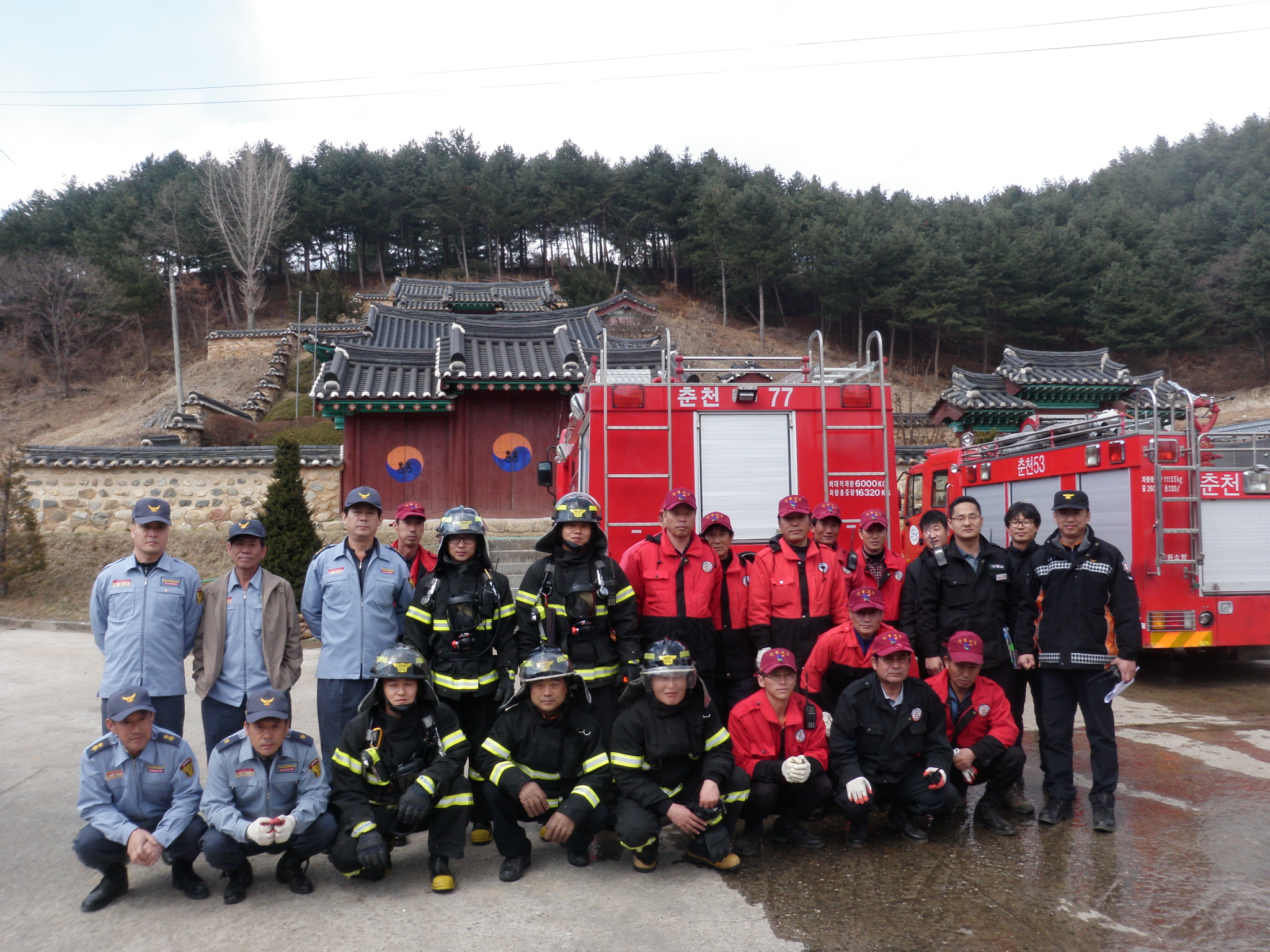 화천119안전센터( 센터장 한광모)에서는 25일 14시 화천향교 화재발생시 신속한 출동태세 확립과 현장 대응능력 향상으로 귀중한 목조문화재를 보호하기 위한 능력을 제고하기위해 화천군 화천읍 하리에 위치한 화천향교 문화재 지키기 훈련을 실시하였습니다.
