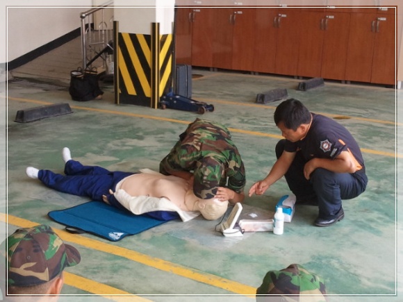 응급처치교육에 임하는 장병들의 모습에서