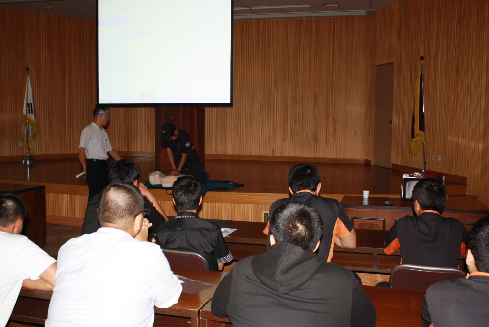 춘천소방서(서장 조완구)에서는 2011.09.23(금) 본서 대회의실에서 공익근무요원을 대상으로 정훈교육을 실시하였습니다. 소방행정과장님께서는 복무규정을 잘 준수하며 자신감을 가지고 근무할것을 당부하셨습니다. 또한 환절기 건강관리에 유의할 것을 거듭 강조하셨습니다. 행정과장님의 교육 후 심폐소생술 교육시간을 가짐으로써 더욱 유익한 정훈교육이 되었습니다.