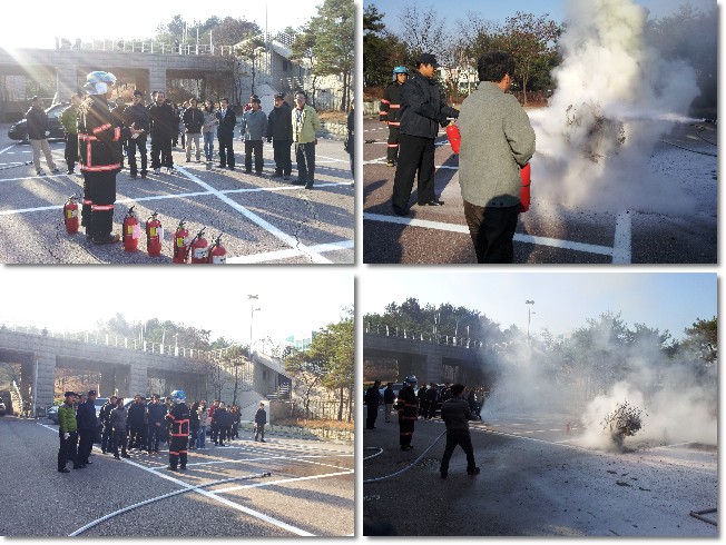 실시하였습니다.  박물관 관계자 20여 명과 함께 소화기 및 소화전 사용법에 대해 교육을