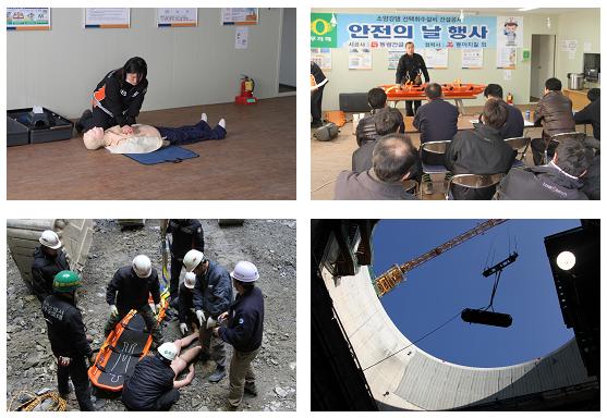 소양강댐 선택취수설비 공사현장은 45m 높이의 수직구 내부에서 약 40여 미터 아래로 땅을 파내려 가는 작업을 실시하고 있어서 사고 발생 시 공사현장 외부로 환자를 구조해 내기 어렵기 때문에, 이번 훈련을 시작으로 응급처치 교육 및 구조훈련을 지속 실시할 예정이다.