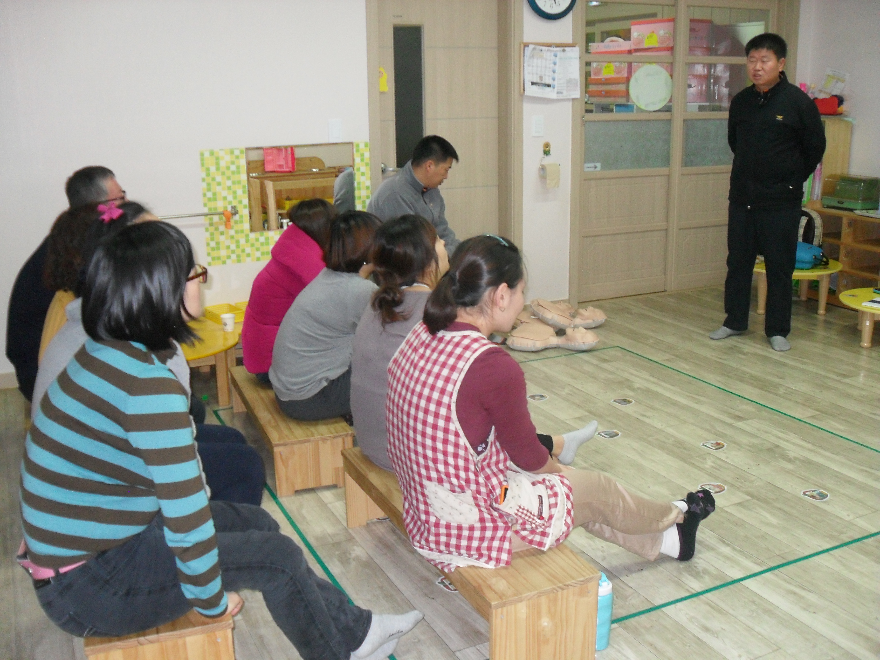 사내안전센터에서는 12월 15일 저녁 6시 부터 1시간 30분가량 사과나무어린이집 선생님을 대상으로 1부는 화재발생시 안전대피요령 및 소화기 사용법을 2부는 기도폐쇄 응급처치 및 CPR실시 방법을 교육 하였으며 이후로도 선생님들과 더블어 어린이집 안전에 관한 제반 업무를 상호 긴밀히 협조 할것을 약속 하였음