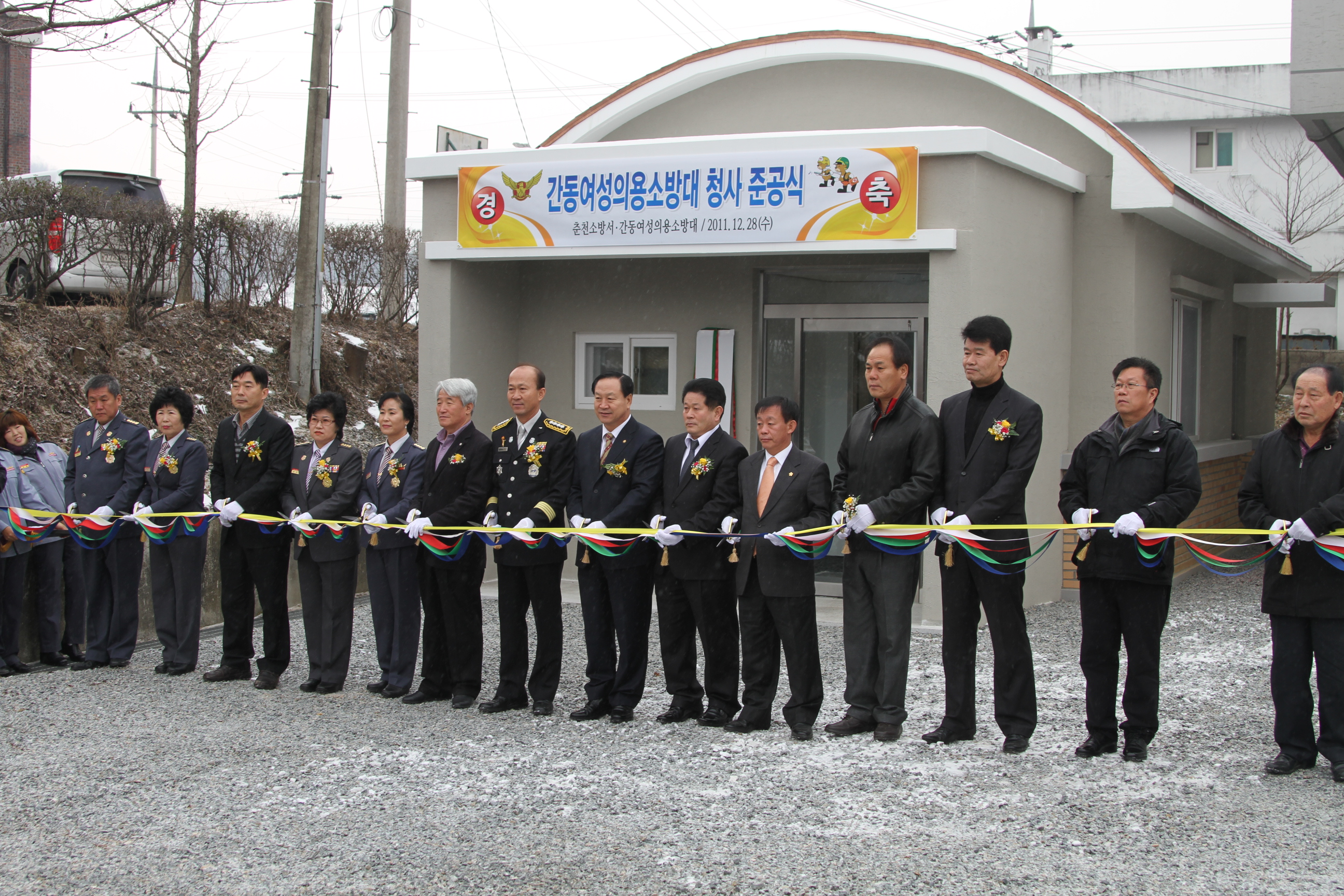춘천소방서 화천지역 간동여성의용소방대 청사 신축 준공식이 28일 오전 강원 화천군 간동면 오음리 신축청사부지에서 조완구 춘천소방서장, 신상건 화천119안전센터장, 정갑철 화천군수, 한기호 국회의원, 방승일 도의원, 주종화 군의원을 비롯한 각 기관단체장들과 소방공무원, 의용소방대원, 지역주민 등이 참석한 가운데 열렸다
