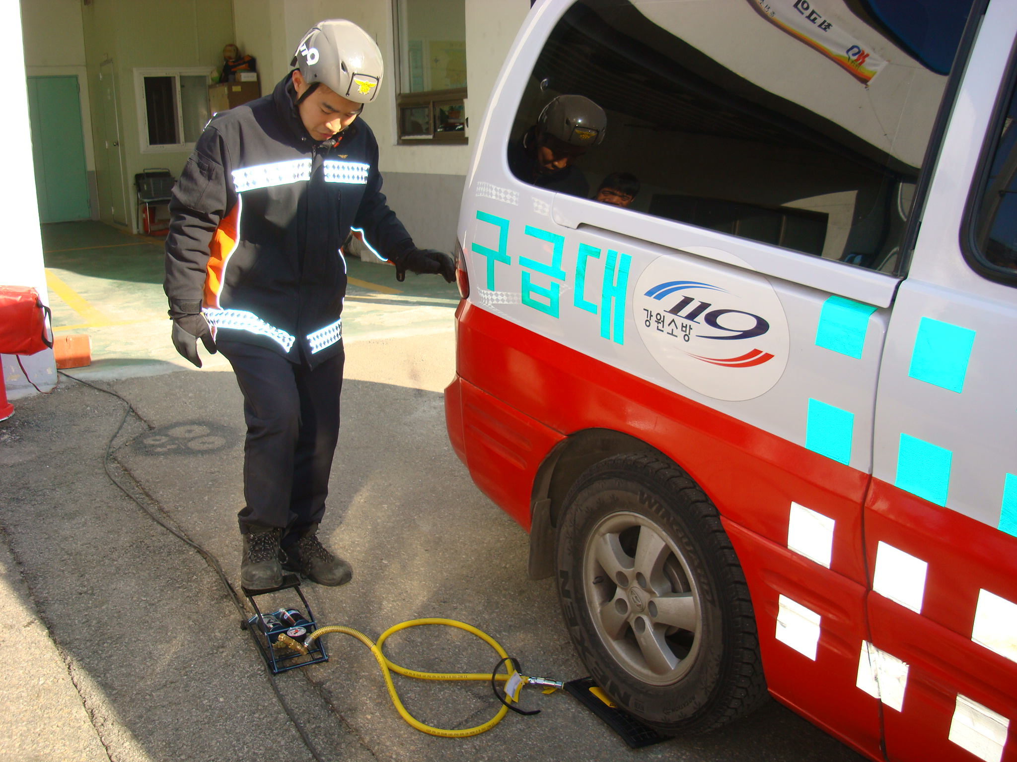 양구119안전센터(센터장 정종호)에서는 소형 리프팅 에어백 및 분리형들것 조작훈련을 실시하였다.