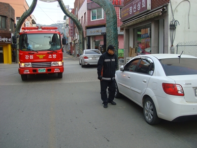 양구119안전센터(센터장 정종호)에서는 금일 양구관내 화재취약지역 대상으로 소방출동로 확보 훈련을 실시하였습니다. 이번 훈련은 양구중앙시장을 중심으로 양록길, 사명길 등 차량 정차가 많은 곳을 대상으로 실시하였습니다.