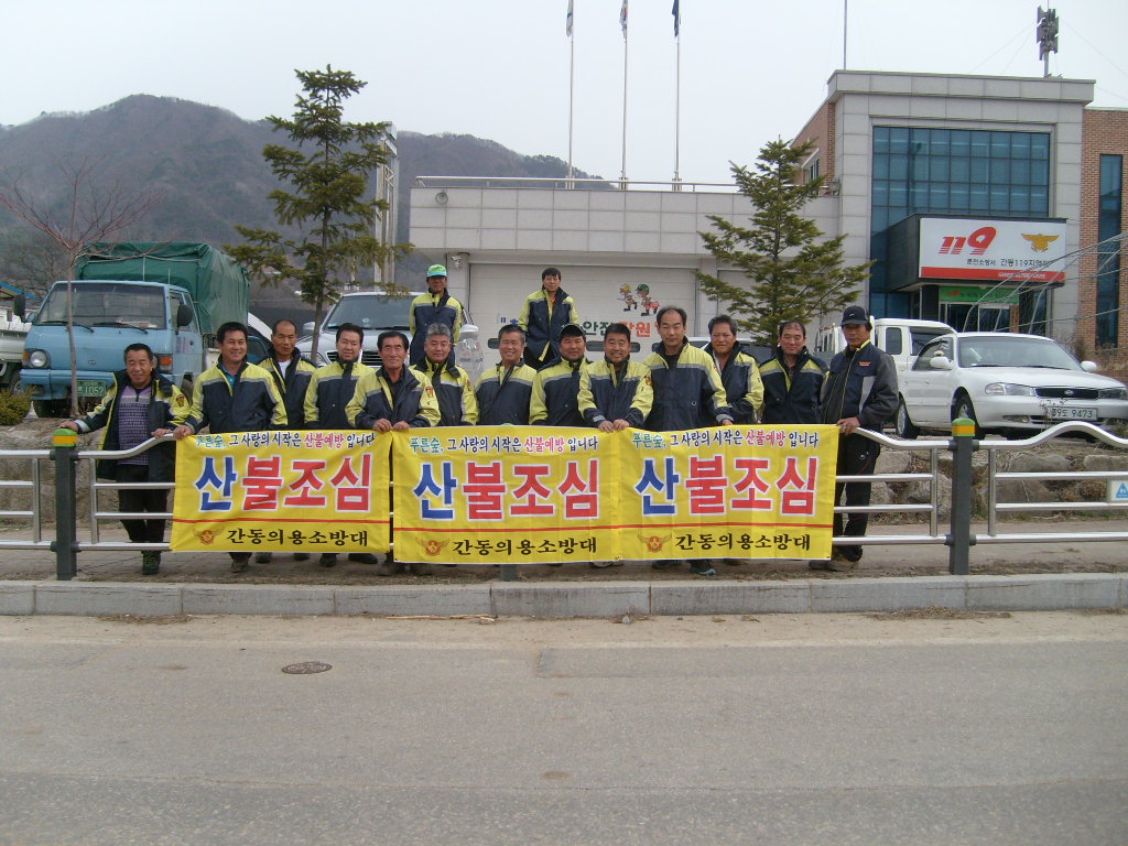 간동면의용소방대(간동의용소방대,간동여성의용소방대,간동유촌지대)는 화천군청(간동면사무소. 산불진화대)과 합동으로 1년중 산불발생 위험이 가장높은 청명 한식일을 즈음하여, 등산객 성묘객 등 입산자가 급증함에 따라 용화산 등산로에서 산불예방캠페인을 실시하였습니다.