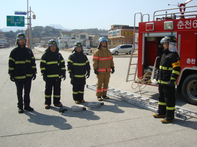 사내119안전센터(센터장 소방위 이강춘) 에서는 2012년 4월 19일(월) 화재진화사 실기시험대비 및 현장에 강한 소방관으로 거듭나기 위해 현장활동 표준기법 실시하였습니다.