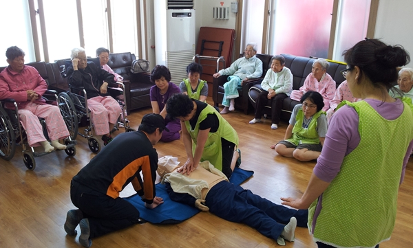 이번 현지적응훈련은 대상처 출동로 및 내부 구조 파악 등으로 실시되었으며, 현지적응훈련 종료 후 관계자 및 요양보호사 등을 대상으로 심폐소생술 교육 및 소방안전교육도 병행하여 실시 하였습니다.