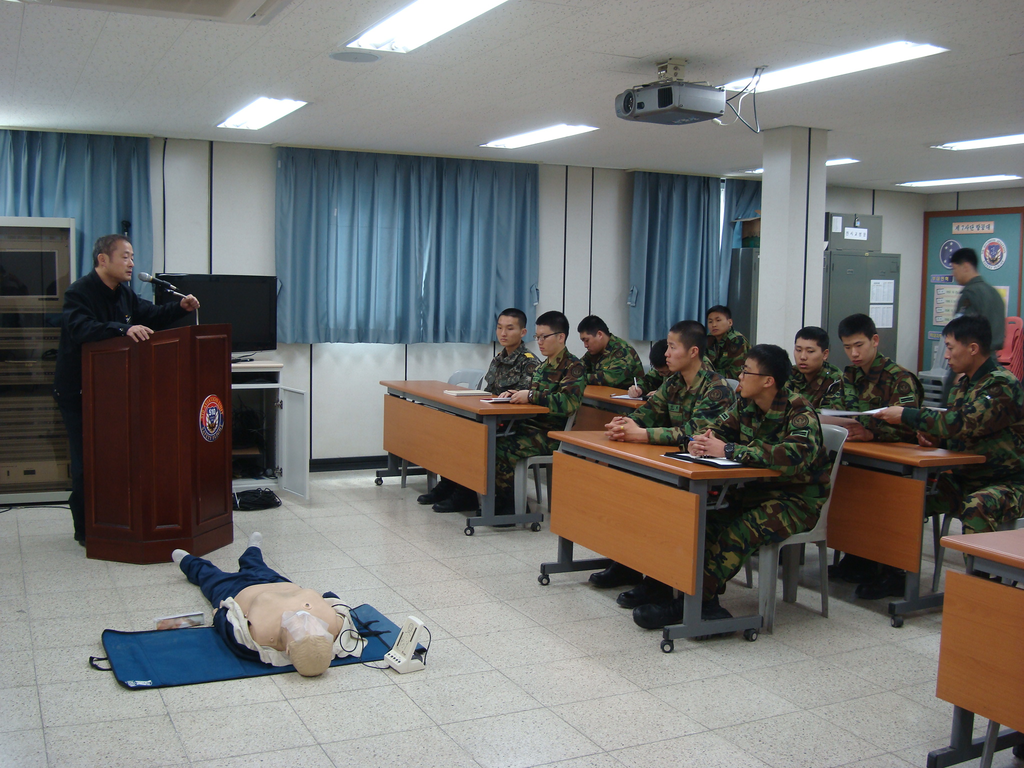 사내119안전센터(센터장 이강춘) 에서는 2012.04.27 10:00 ~ 11:00 510항공대 부대원들을 대상으로 심폐소생술 및 성인. 영.유아 기도폐쇄 방법에 대해 교육하였습니다.