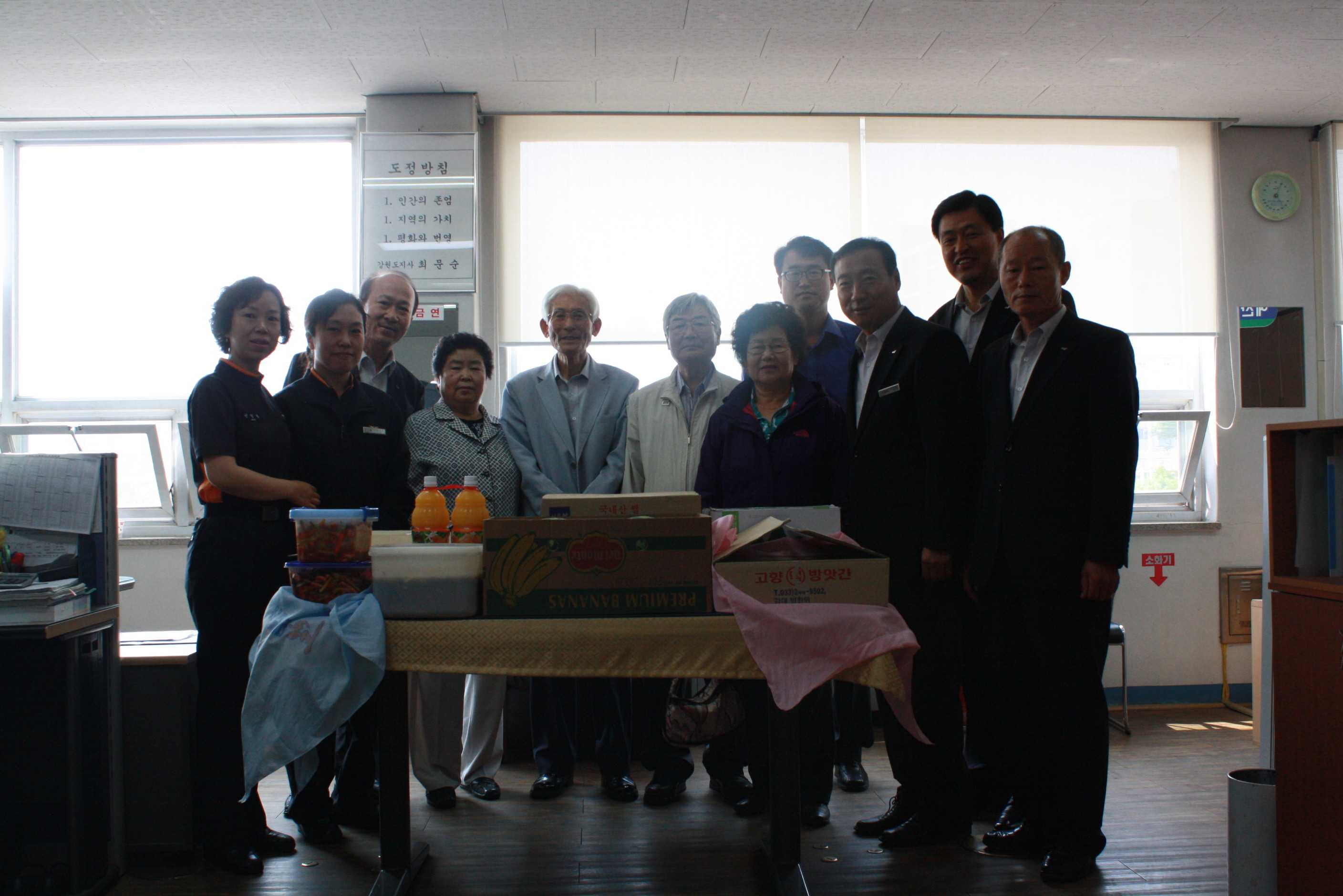 춘천소방서(서장 조완구)에 2012.05.18(금) 우리서와 자매결연을 맺은 후평7단지노인회 회장 및 어르신 4분께서 격려방문하여 주셨습니다. 평소 명절때마다 찾아뵈어 어르신들 어깨도 주물러 드리고 담소도 나누며 지냈었는데, 저희가 가야함에도 이렇게 먼저 먼걸음 하여주신 어르신들께 정말 진심으로 감사드립니다.