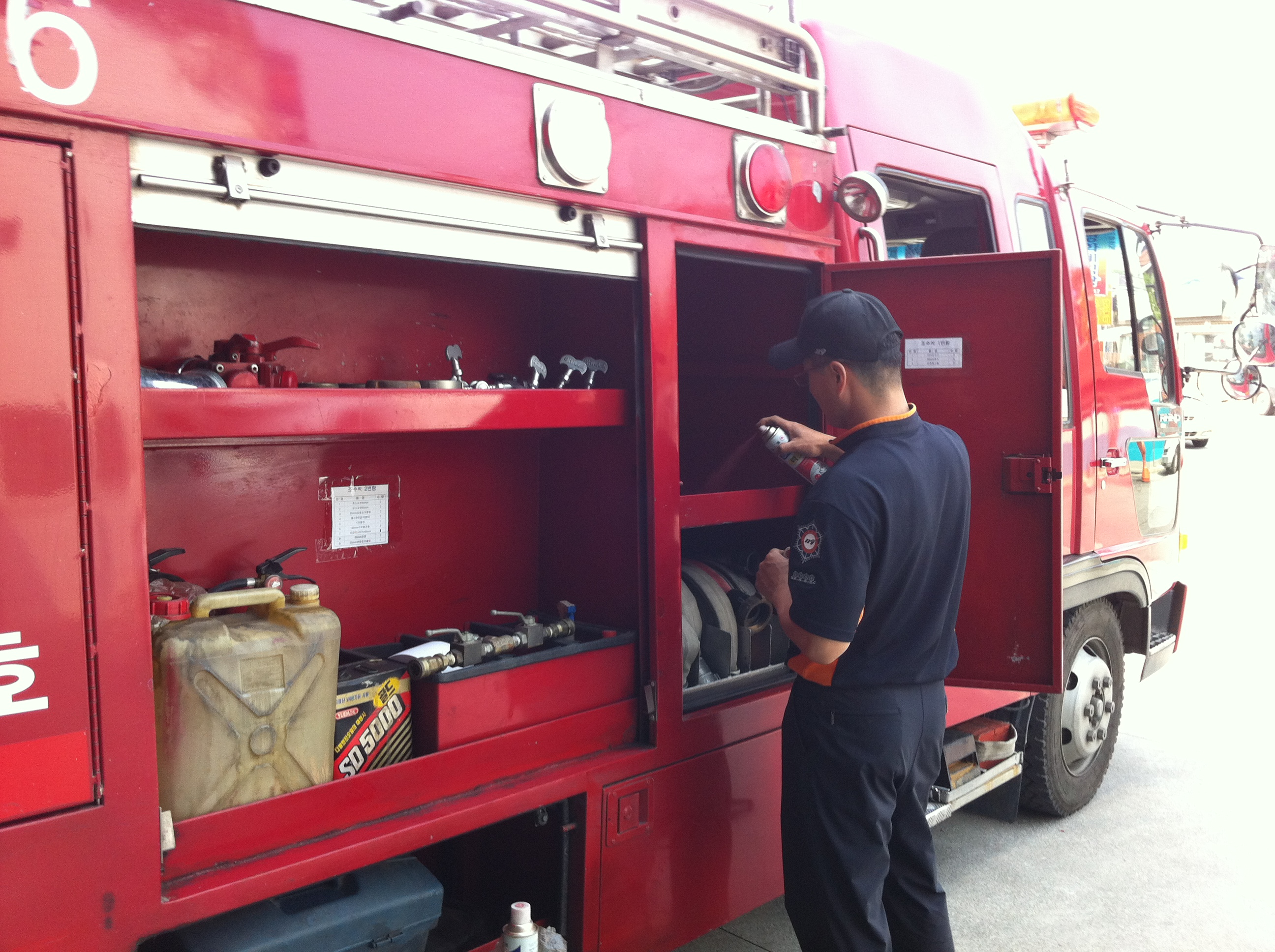 확인점검"을 대비하여 펌프차량의적재장비 정비 및 차량청