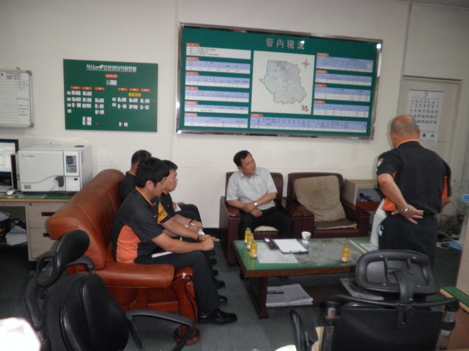 제35대 우원기 춘천 서장님께서 금일 석사119안전센터(센터장 이봉춘)를 초도순시 하였습니다. 새로 부임하셔서 직원들에게 여러가지 당부 특히, 안전사고 방지 및 음주운전 근절을 주의하라고 말씀하셨고, 직원들의 에로사항 및 건의사항을 들으셨습니다.