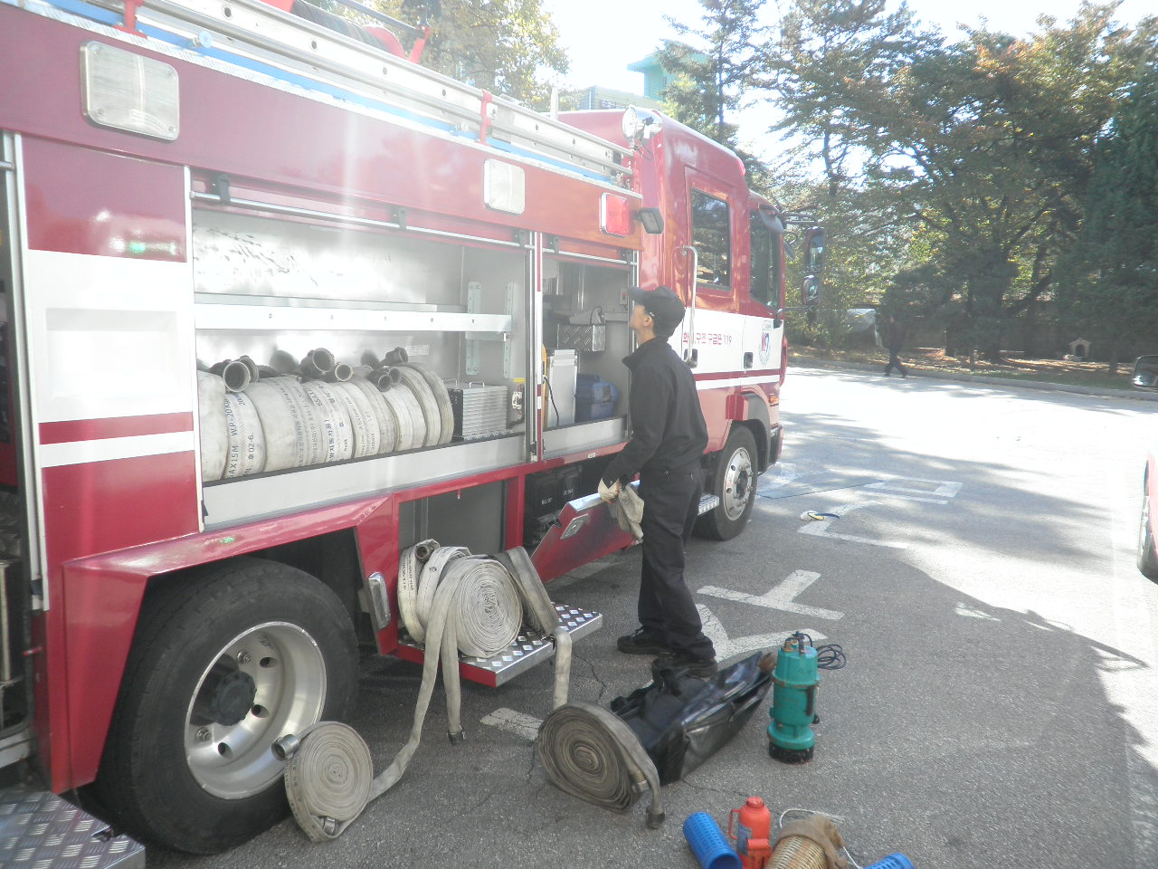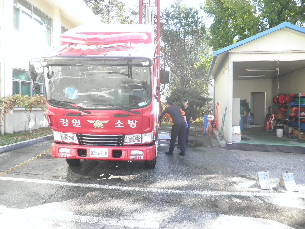 석사119안전센터(센터장 소방위 이봉춘)는 10월 23일 하반기 소방장비 검열 대비 차량 정비 및 내/외관, 엔진룸 청소 등을 실시 하였습니다.