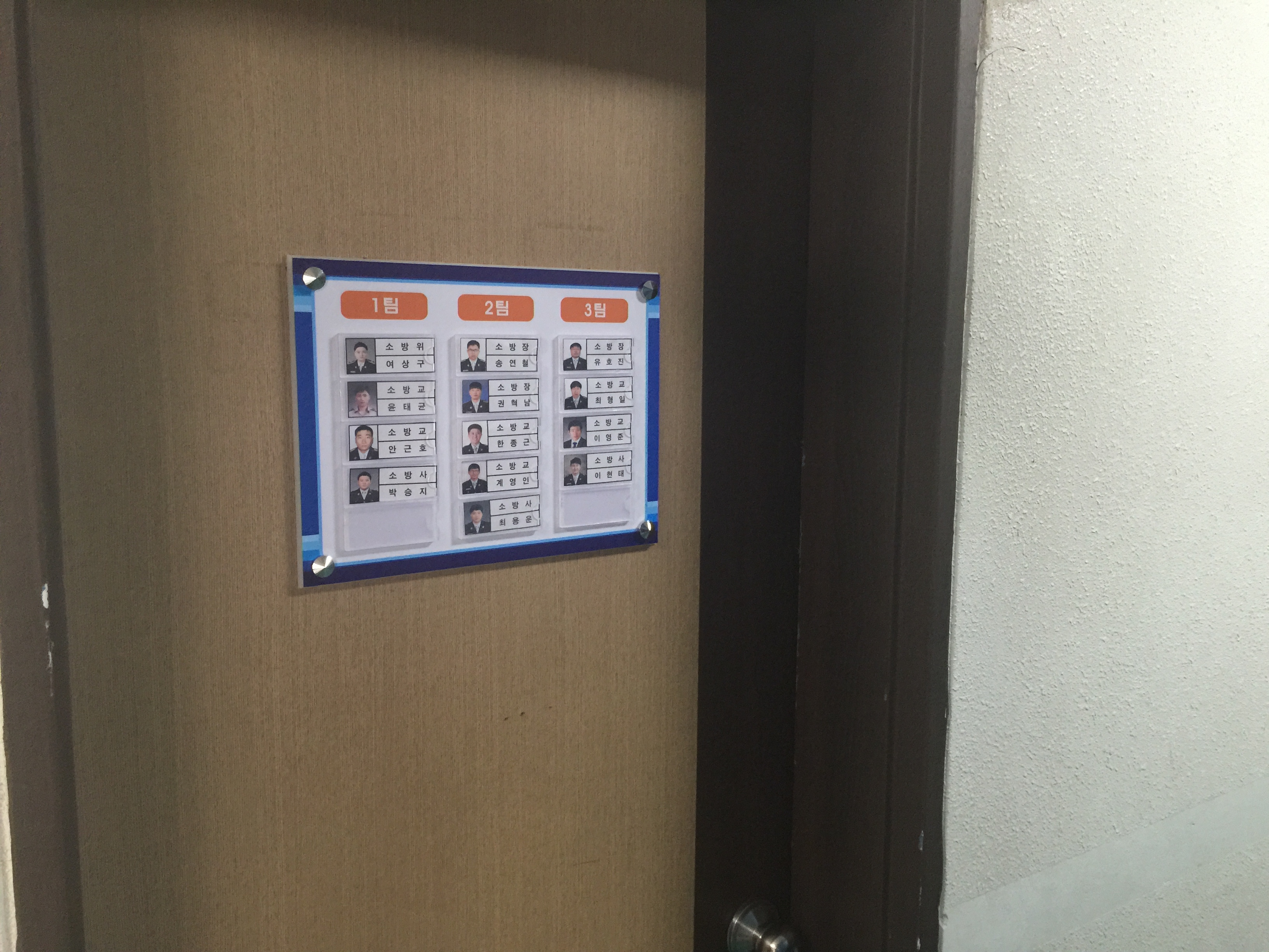 현장대응과 대기실 문 및 개인사물함에 네임텍 설치했습니다.