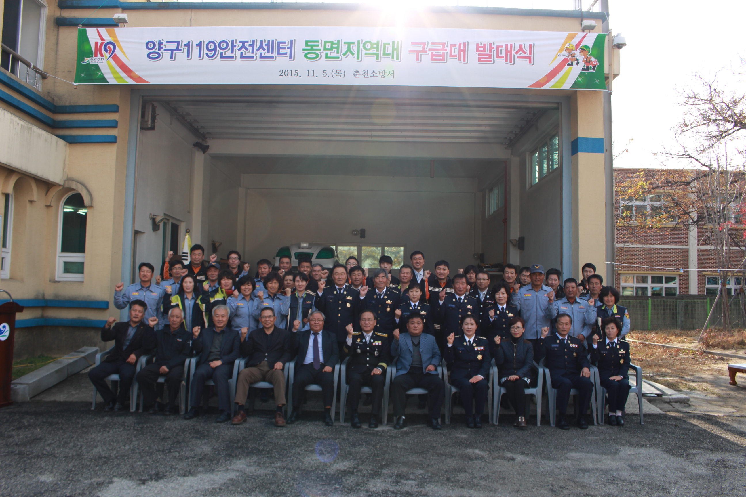 2015.11.5(목) 14시 양구동면지역대에서 양구부군수, 군의장을 비롯 지역주민 80명이 참석한 가운대 구급대 발대식을 가졌다.