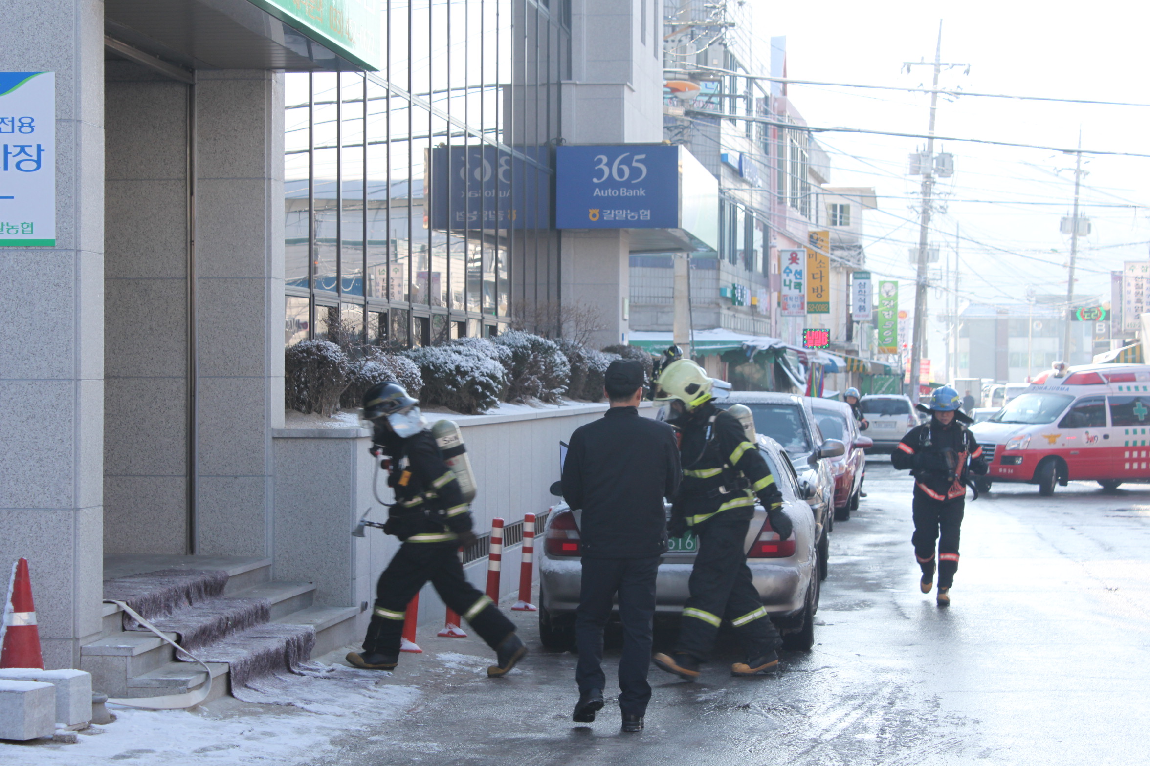 철원소방서(서장 최민철)는 9일 오전 10시 갈말농협을 대상으로 지하층 화재발생을 가상하여 대원들의 단계별 대응절차 숙달과 현장에서의 안전관리 요령 등 완벽한 현장대응능력을 강화화기 위한 지하층 화재진압 및 인명구조훈련을 실시했다.