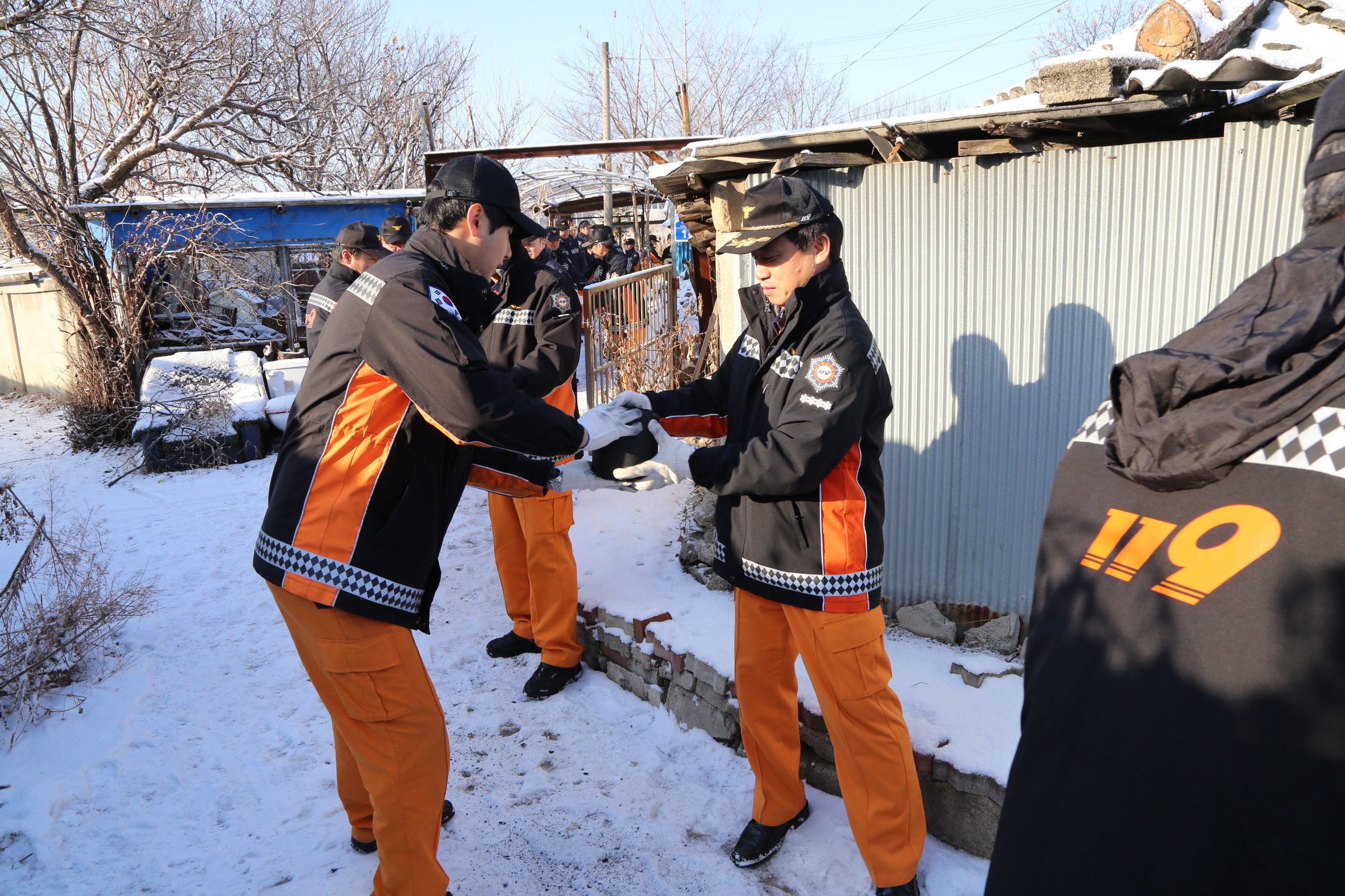 이날 소방서 직원들은 기초생활수급자 및 독거노인 등 7가구에 대해 연탄 3,500장(가구당 500장)을 직접 전달했다.
