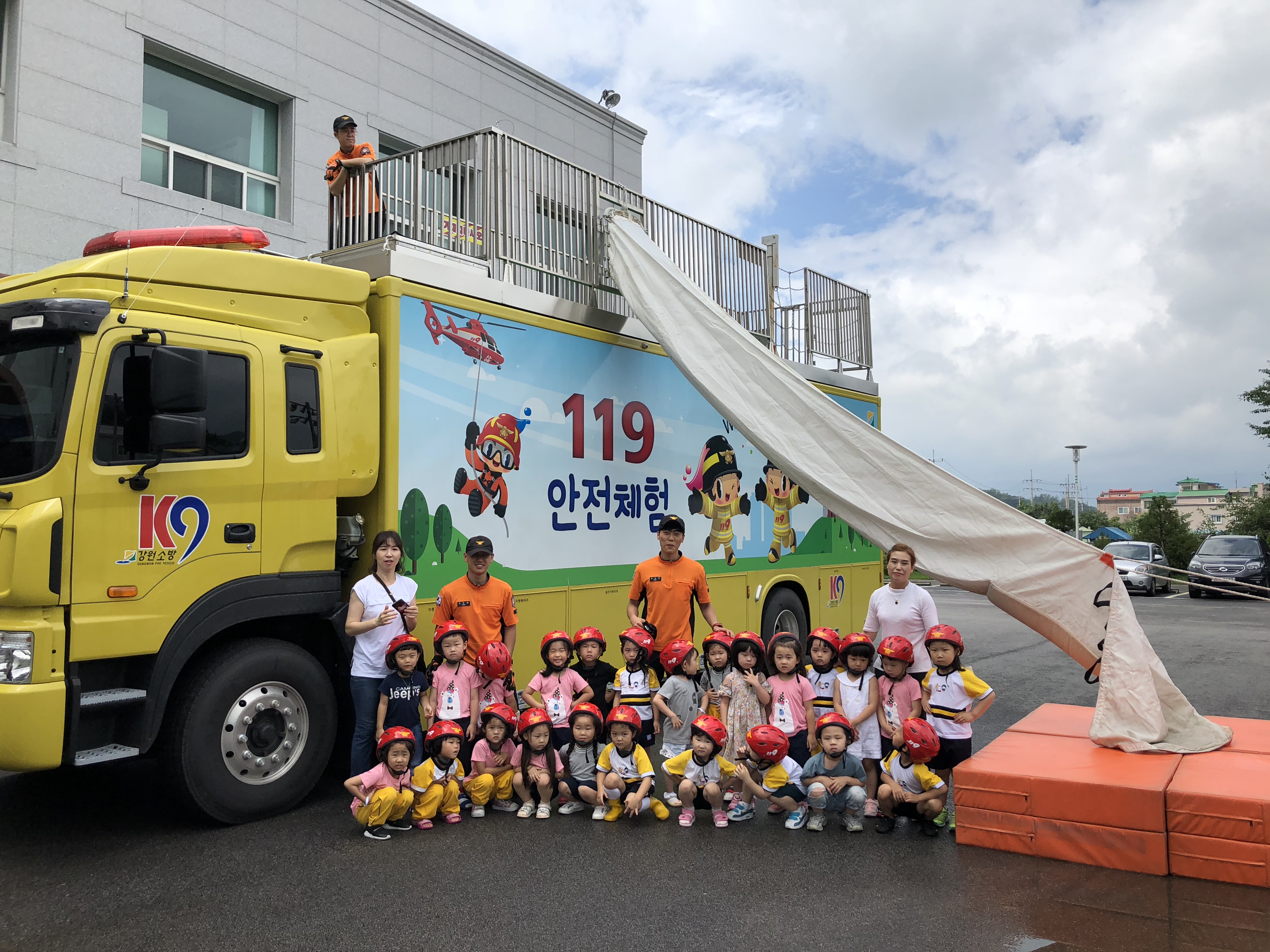 이날 교육은 소방안전교육을 시작으로 지진발생시 대피체험, 화재발생시 열·연기 발생에 따른 대피체험, 경사 구조대를 이용한 탈출체험 등 안전의식을 심어주는 체험 위주의 교육으로 진행됐다.