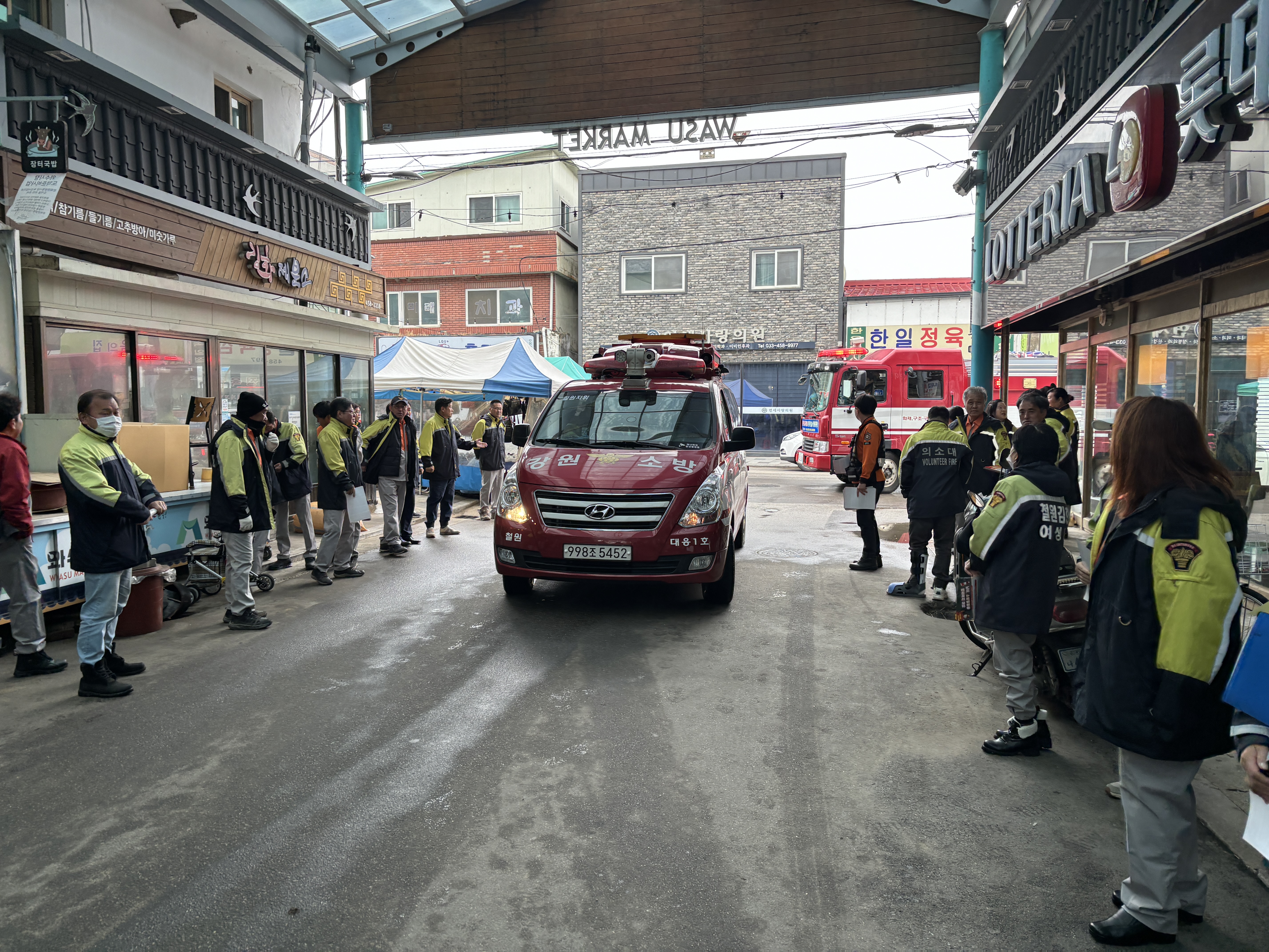 와수전통시장 소방차량 길 터주기 훈련