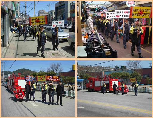 묵호119안전센터(센터장 이승원)는 4.15(목) 11:00 ~ 12:00 묵호의용소방대원 45명과 함께 묵호중앙시장 및 풍물시장, 묵호역 사거리에서 피켓이용 가두캠페인을 통하여 주민들에게 산불조심 홍보 및 산불예방을 위해 꼭 지켜야 할 사항들에 대해 홍보하였습니다.