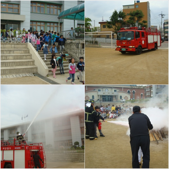오늘 훈련은 교직원 및 학생들에게 화재발생시 신고요령 및 대피훈련, 소화기를 사용한 초기진화훈련, 기타 안전교육을 실시하였습니다.