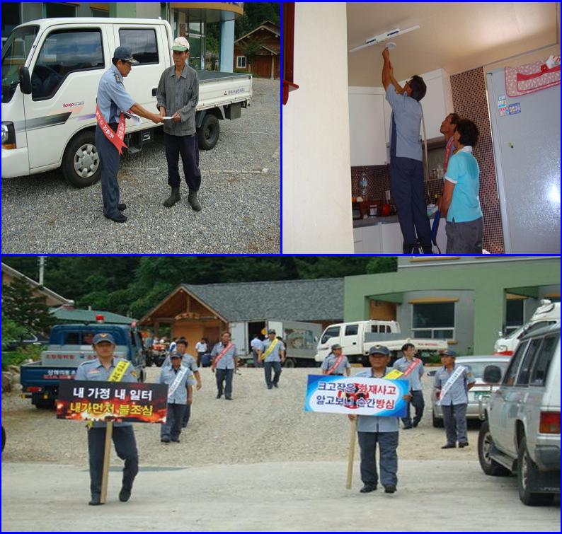 삼화의용소방대(대장 김운래)는 9월 8일(10:00~11:00) 삼화의용소방대 자매결연마을인 신흥마을(신흥동 14통)을 방문하여 안전한 고향 만들기 캠페인 전개와 함께 화재취약계층 주택에 단독경보형 감지기를 설치하였다. 그리고 북삼센터장과 삼화의용소방대원들은 이날 캠페인을 통해서 단독경보형감지기 설치보급 및 홍보활동, 화재와의 전쟁관련 대국민 화재예방홍보, 소방차 길터주기 운동홍보 활동을 전개하였다.