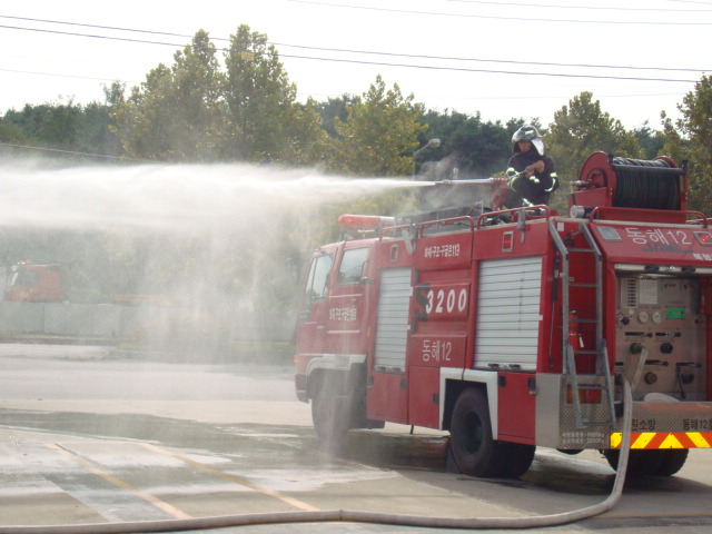 방수훈련 및 공기호흡기 착용훈련을 중점으로 실시했습니다.