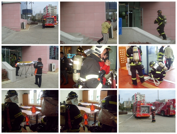 자체시나리오에 의한 가상 화재지압훈련 및 인명대피 요령 및 문서반출동 훈련지도, 출동로숙지 및 인근소방용수 현황 파악등 을 하며 출동태세에 만전을 기하였습니다.