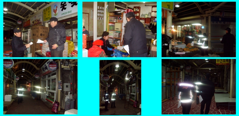 천곡119안전센터 센터장 유승용은 겨울철을 맞이하여 대형화재가 예상되는 재래시장에 철시 확인 지도를 실시하였으며, 소방통로 확보 및 소화전함,피난사다리 확인하였다.
