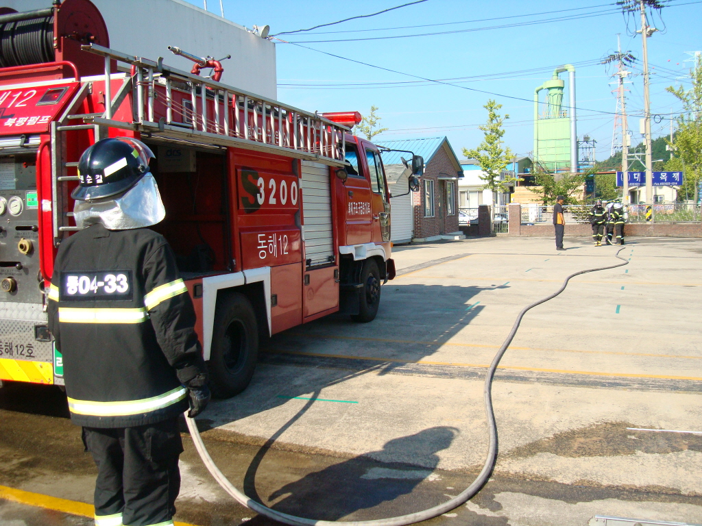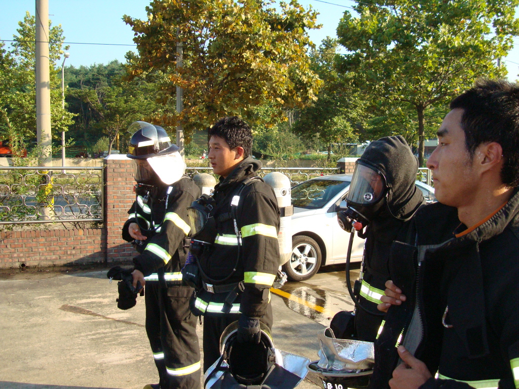 늦더위에 모든 개인안전장비를 갖추고 훈련에 임하다 보니 어느새 온 몸은 땀으로 뒤범벅이 되었네요.