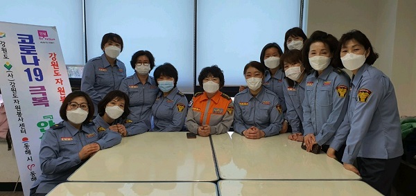 동해소방서 여성의용소방대는 3월 3일부터 동해시 소재에 있는 마스크공장에서 자원봉사활동을 하고 있으며, 또한 동해시 다중이용시설에 방역·소독활동을 실시하고 있다.
