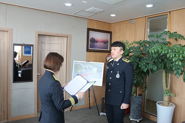 김정희 서장은“동해소방서의 새 가족이 된 걸 환영한다.”며 “자긍심과 사명감을 갖고 자신이 맡은 임무에 최선을 다해주길 바란다”고 전했다.