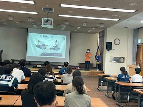 주요 내용은 ▲심폐소생술 및 자동심장충격기(AED) 사용법 ▲기도폐쇄 응급처치 등 이론 ▲소화기 사용법 등이다.