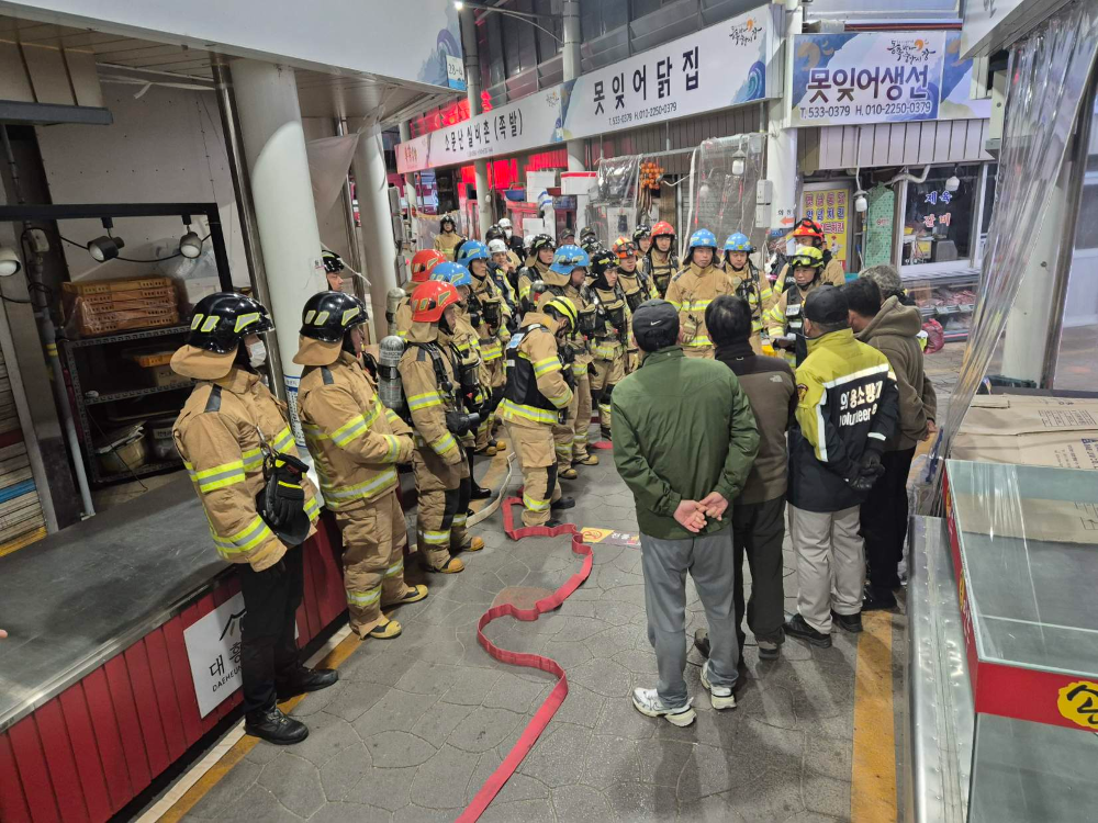 동해소방서(서장 심규삼)는 지난 3일 동쪽바다중앙시장에서 겨울철 화재 발생 시 신속한 초기 대응과 인명 피해 최소화를 목표로 한 합동소방훈련을 실시했다고 밝혔다.
