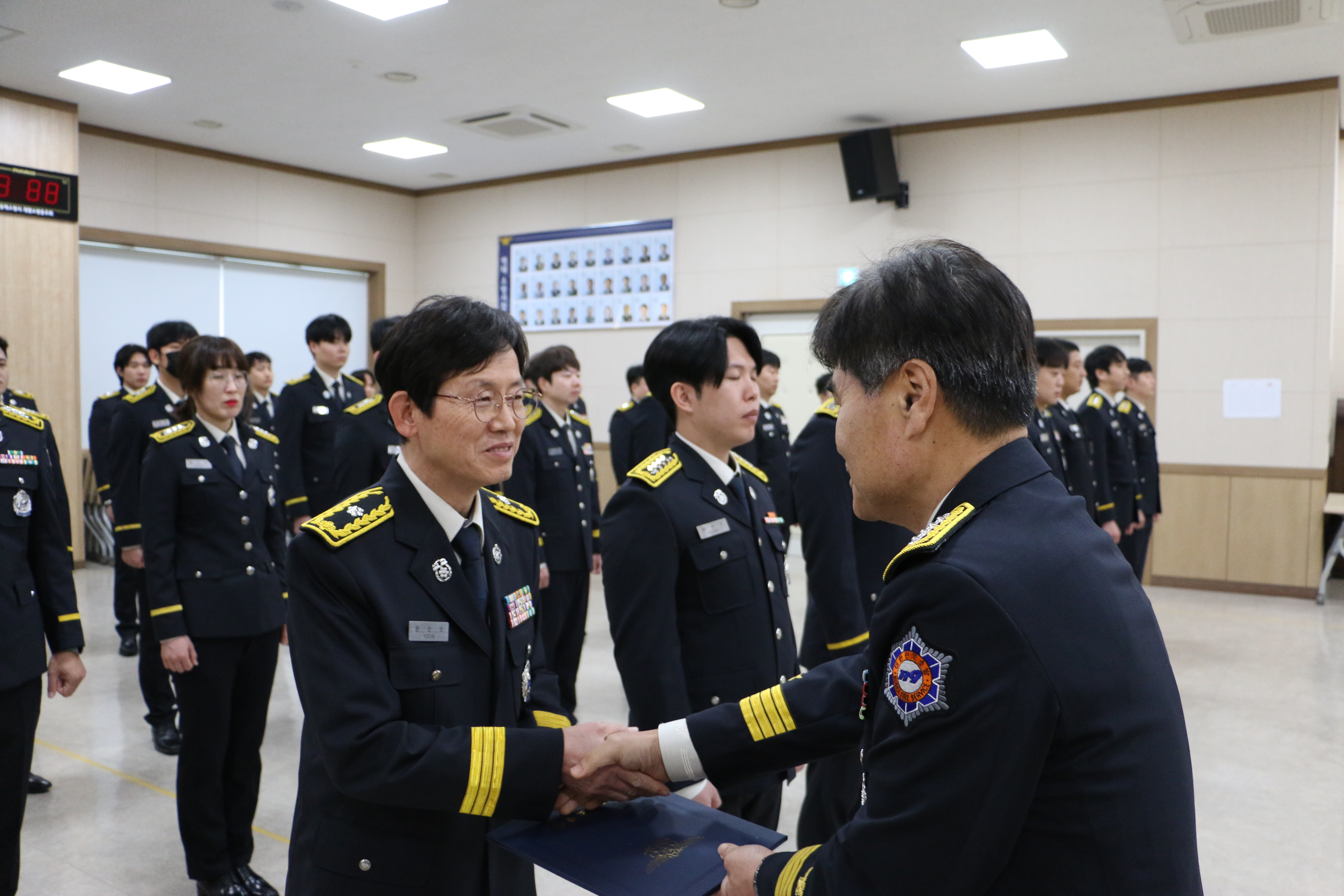 이날 행사에는 심규삼 서장과 각 과·단장, 팀장 등이 참석한 가운데 승진·전입자 52명에게 임용장을 수여하고 단체촬영을 하는 순으로 진행됐다.