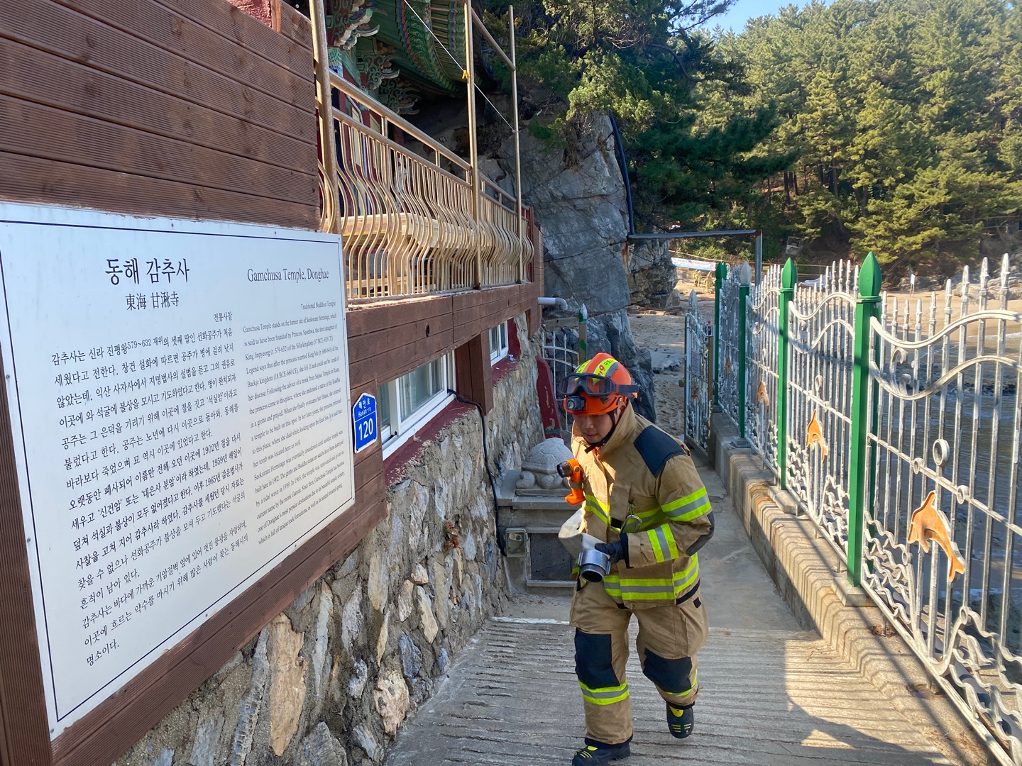 이 날 훈련을 주관한 동해소방서 전동우 현장대응단장은 “목재가 많은 사찰 건물은 화재 발생 시 무엇보다 신속한 대응이 가장 중요하다”며“꾸준한 훈련을 통해 문화재와 산림을 보호하는 데 최선을 다하겠다”고 전했다.