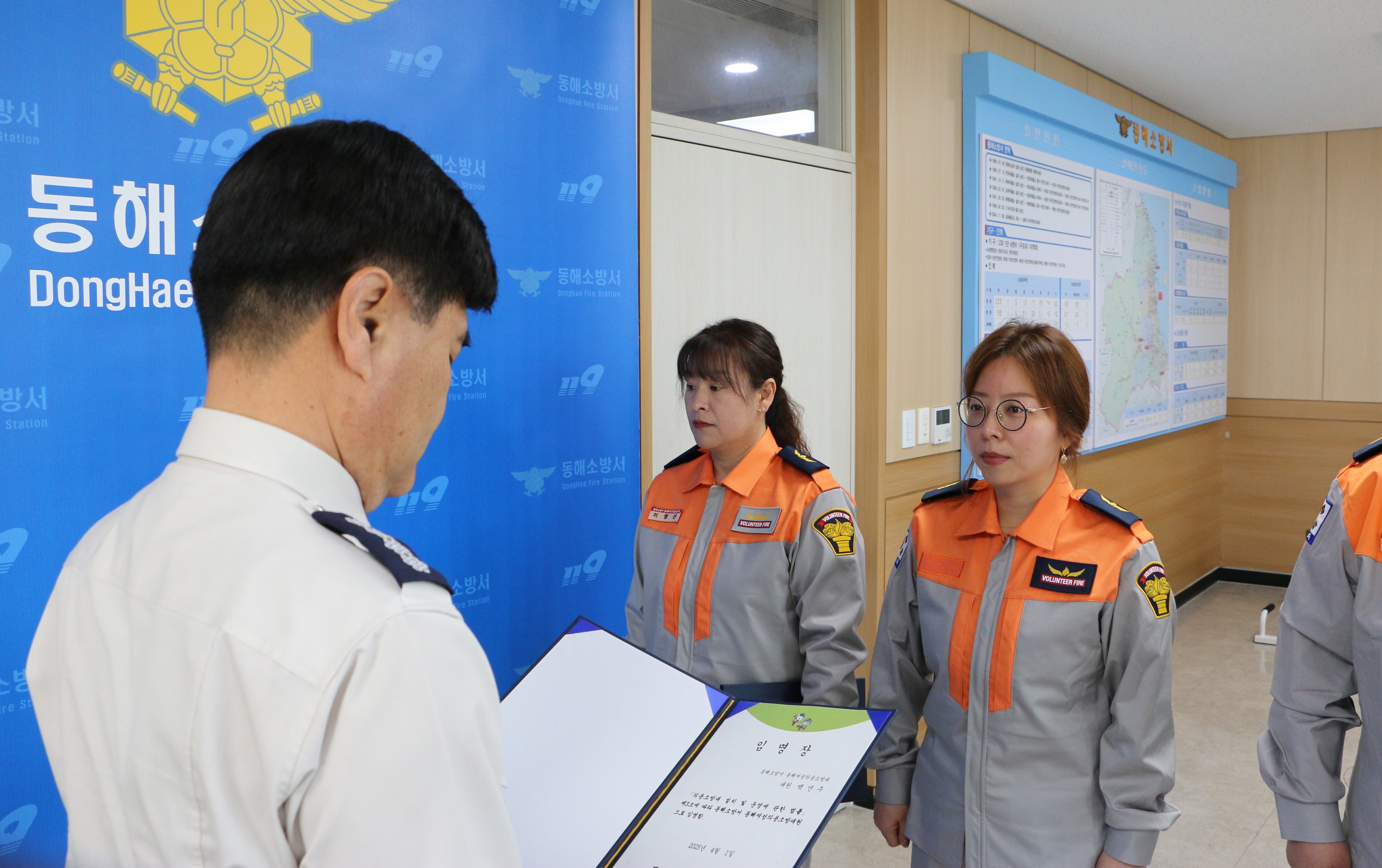 동해소방서(서장 심규삼)는 7일 오전 서장실에서 신규 의용소방대원에 대한 임명장 수여식을 개최했다.