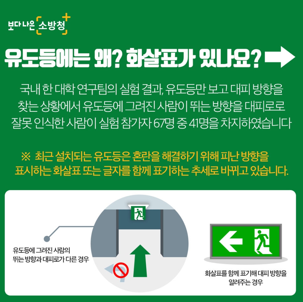 어디가요? 여기에요! 당신의 생명을 구하는 피난유도등! 관심을 가져주세요!