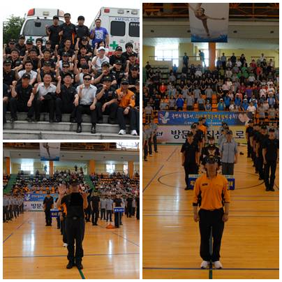 이날 행사에서 도내 12개 소방서 소방공무원 및 의용소방대원등 1000여 명이 참석하였으며 소방기술경연(화재진압,구조,구급) 의용소방대 경연(소방호스끌기,수관연장하고 방수자세) 실시 되었습니다.