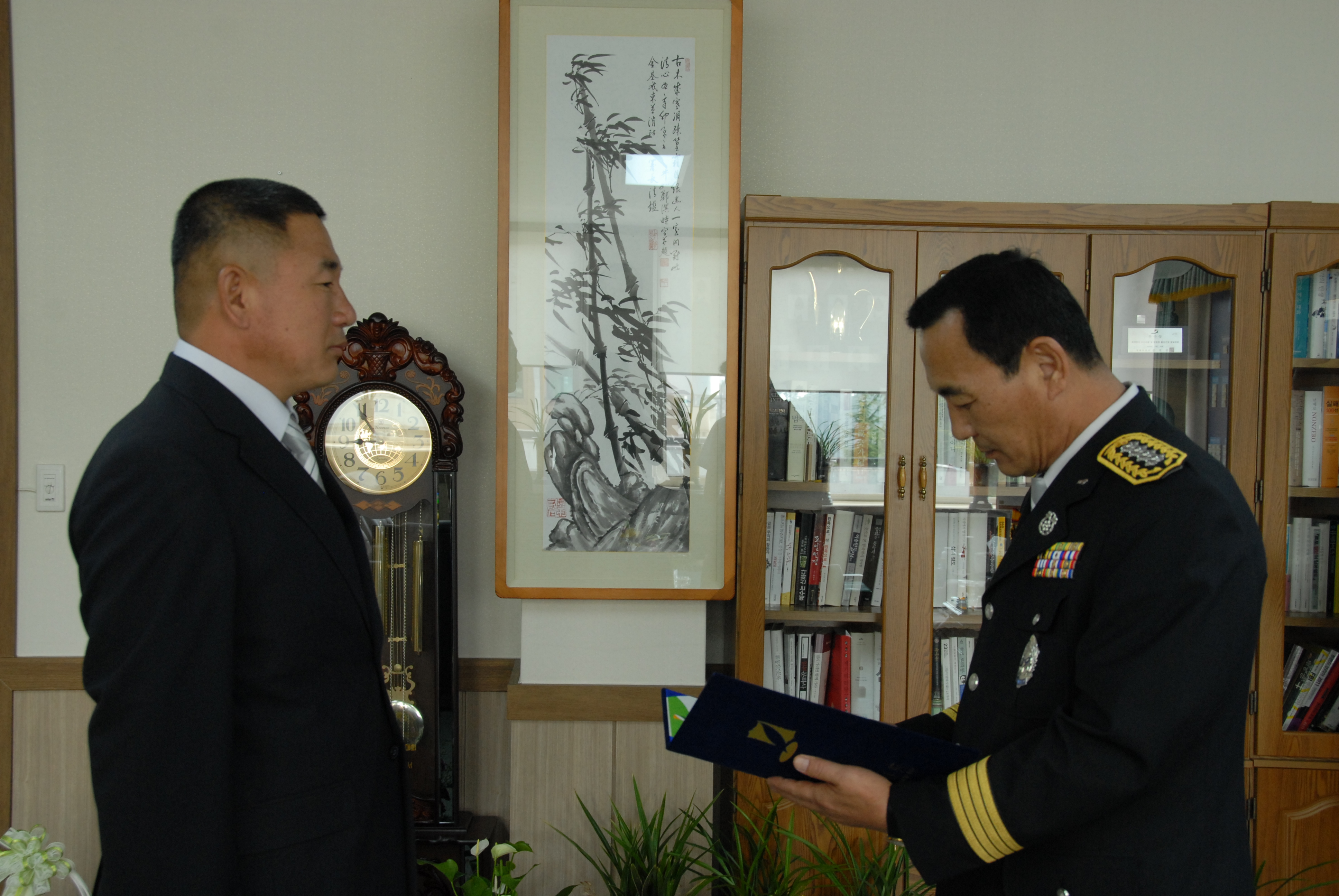 동해소방서 (서장.김기성)은 금일 집무실에서 천곡119안전센터에 근무하고 있는 소방장 박주용에게 강원도지사 표창을 전수하였습니다.