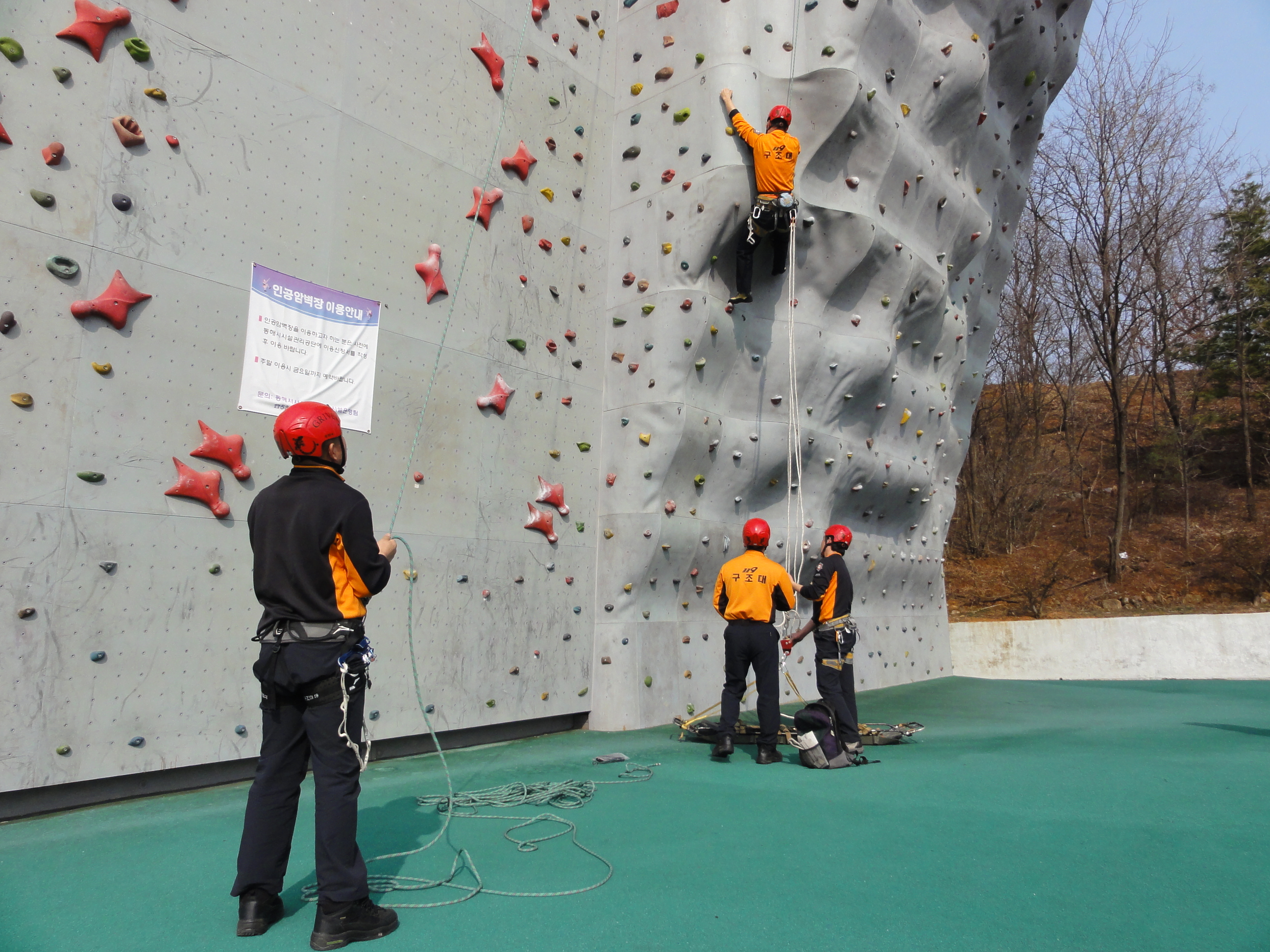 동해소방서(서장 김기성)는 2012. 3. 7일부터 3. 10일까지 4일간 동해시 천곡동 동해웰빙레포츠타운 내 인공암벽장에서 봄철 산악사고 발생에 대비한 산악(암벽)구조훈련을 실시합니다.