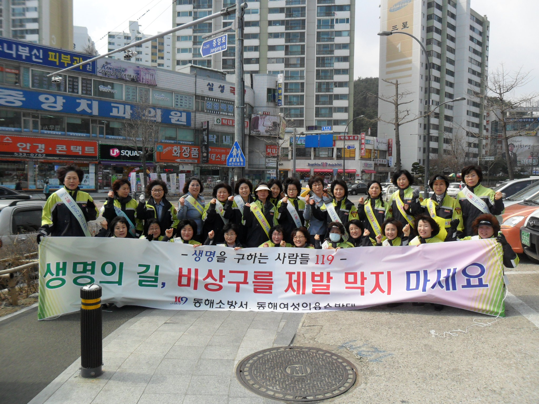 묵호,북평,여성,삼화의용소방대원을 비롯해 총 170명이 참가하여 중앙시장 및 발한삼거리, 북평장터, 천곡동 로터리 및 복개천일원에서 소방출동로 확보, 일반주택 기초소방시설 설치, 비상구 폐쇄 근절 등을 홍보하는 플래카드 설치 및 전단지를 배부하는 등 캠페인을 펼쳤다.