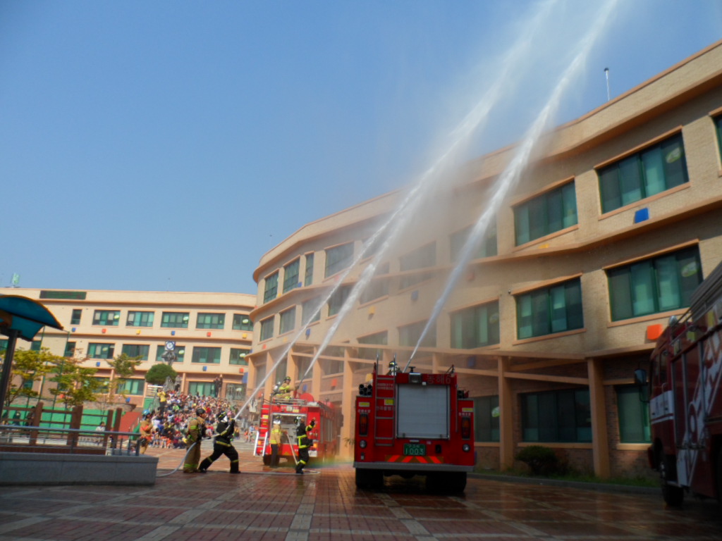 이날 오전 11시부터 진행된 소방훈련은 학교건물내 3~1반 화재발생에
