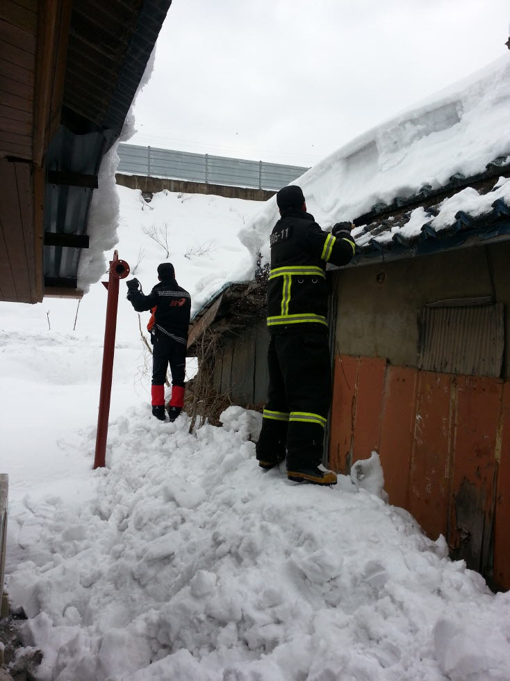 지붕붕괴 위험에 처해 있던 효가동 소재 독거노인 주택의 눈을 제설하여 할머니의 근심을 해소해 드렸습니다.