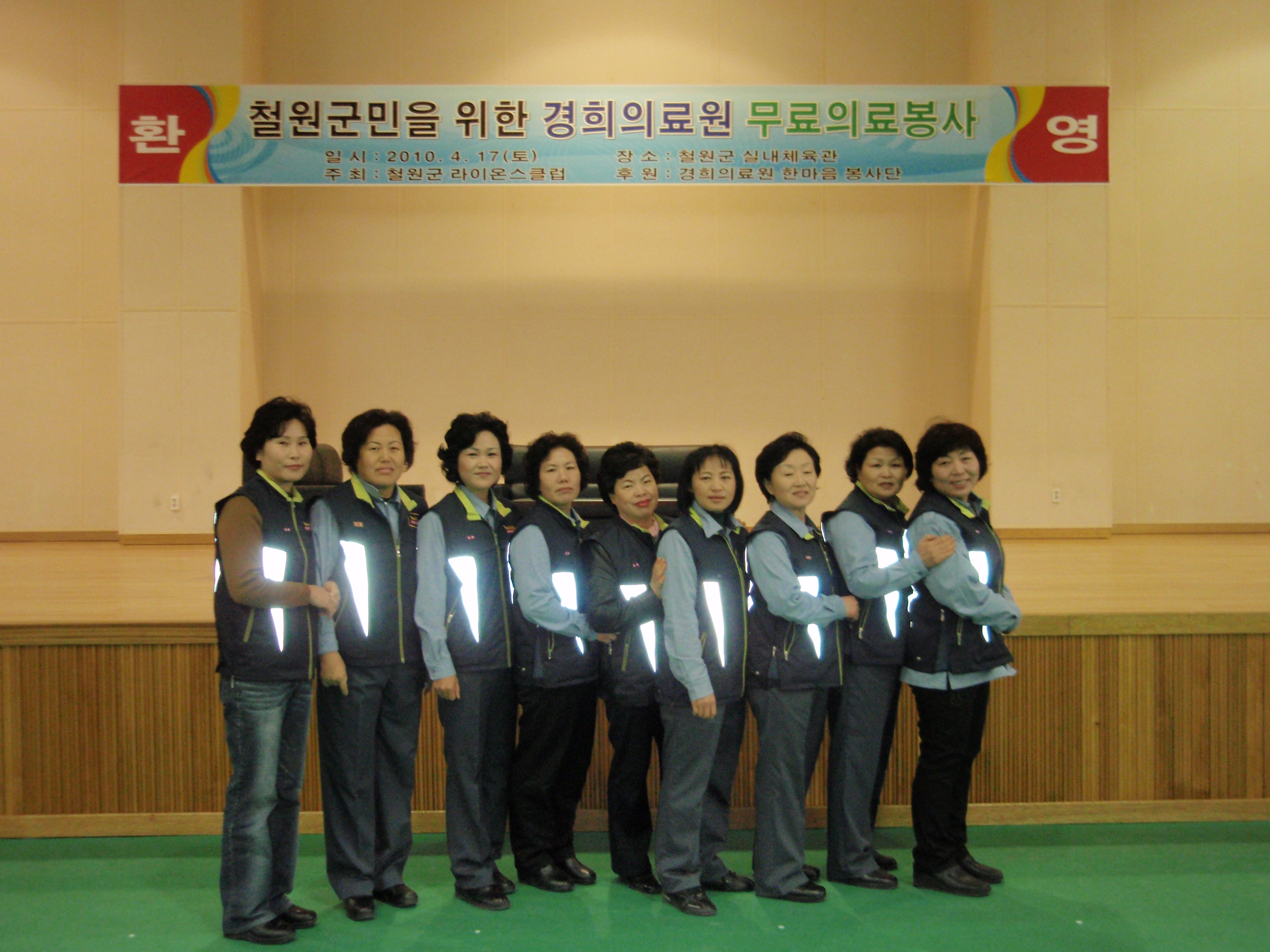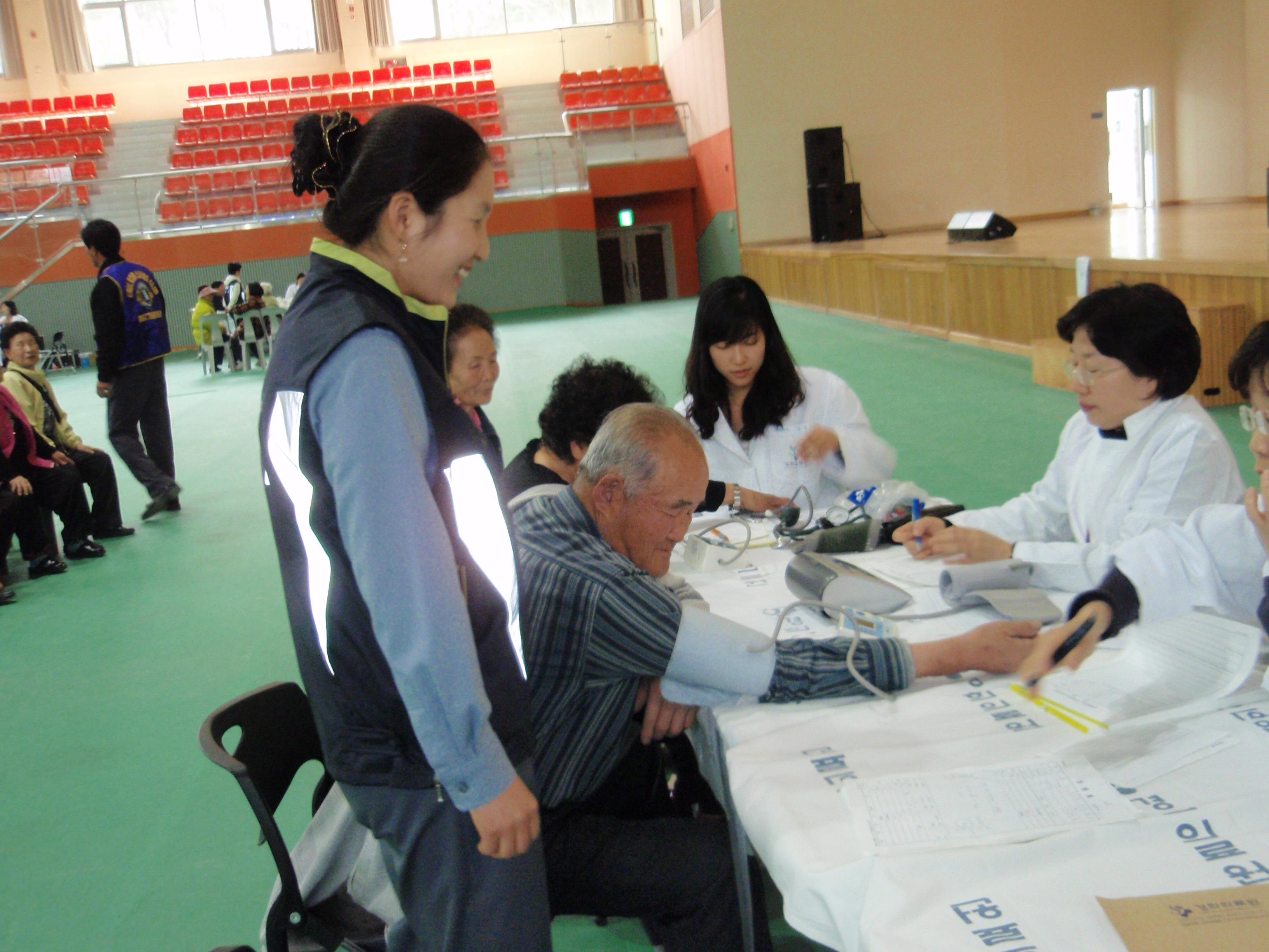 "철원군민을 위한 경희의료원 무료의료봉사"에 참석 오전 9시30분~오후4시30분까지 의료진을 돕고,거동이 불면한 어르신들을 부축하여 자원봉사를 펼쳤다..